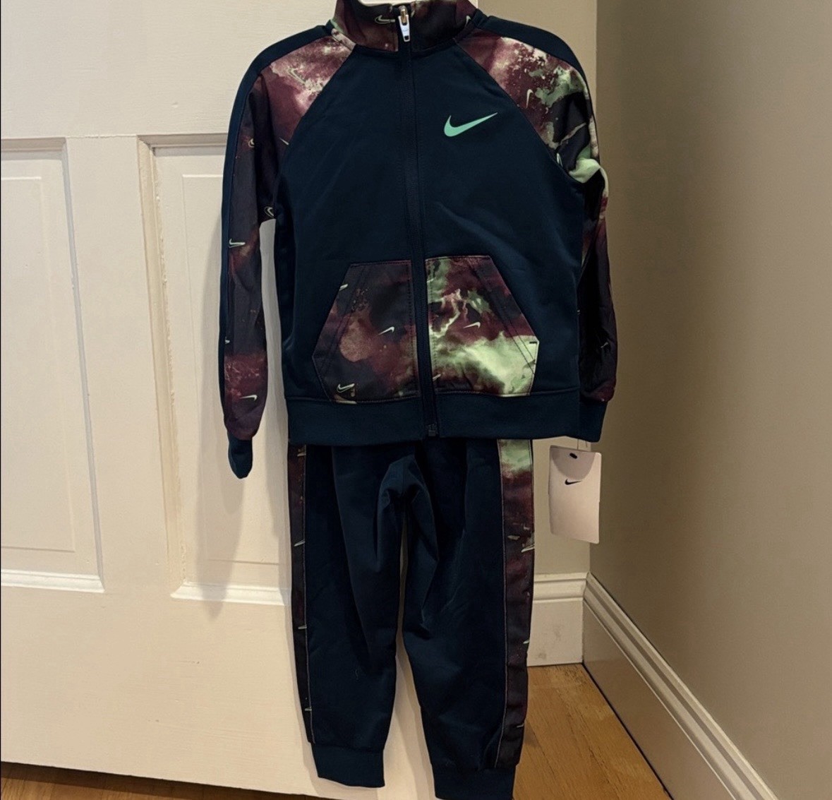 как выглядит Nike Boys 2-Piece Colorblock Jacket Pants Set Blue Multicolor Zip Long Sleeve фото