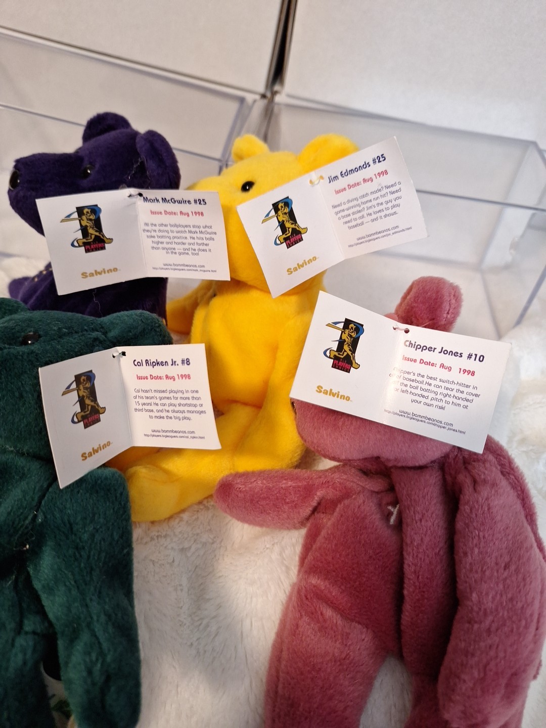как выглядит 12 Salvinos Bamm Beanos Collectible Baseball Stuffed Bears NWT Issued In 1998 фото