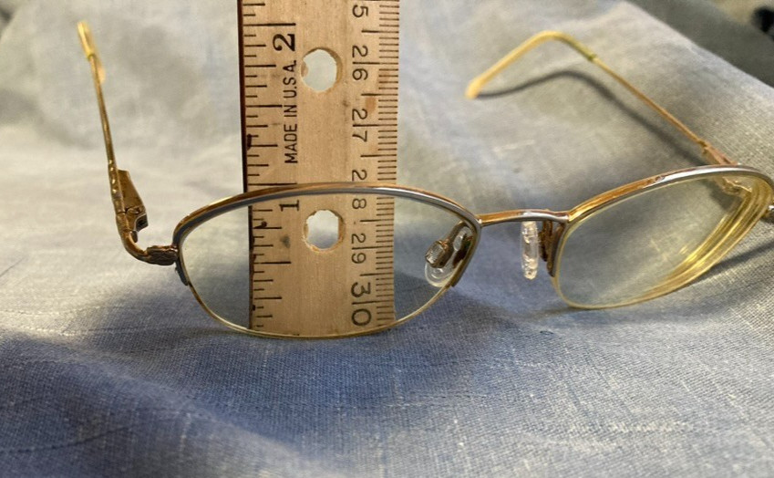 как выглядит Vintage Eyeglasses Gold Tone Wire Flex Hinge UNMARKED Blue Case VERY GOOD фото