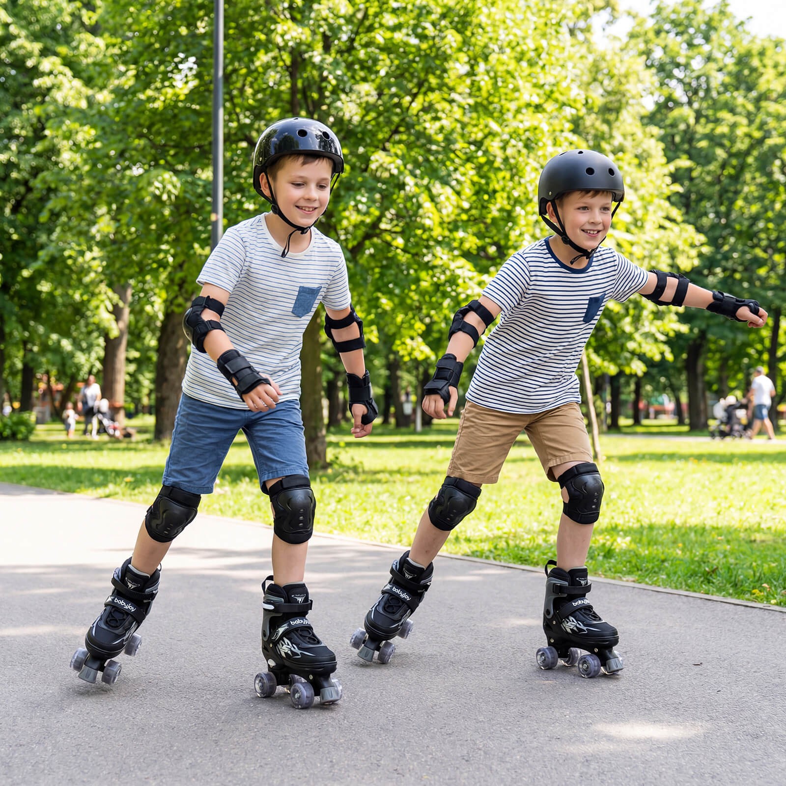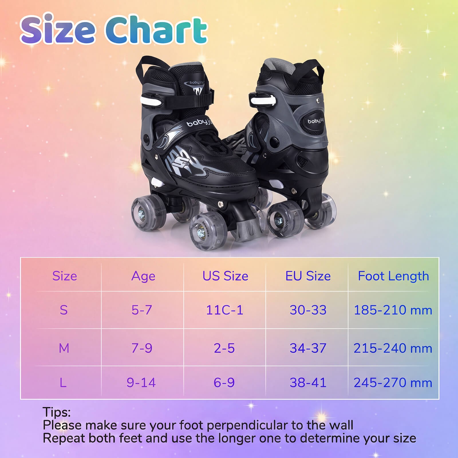 как выглядит Kids Roller Skates 4 Sizes Adjustable Quad Skates w/Light-up Wheels for Ages 7-9 фото