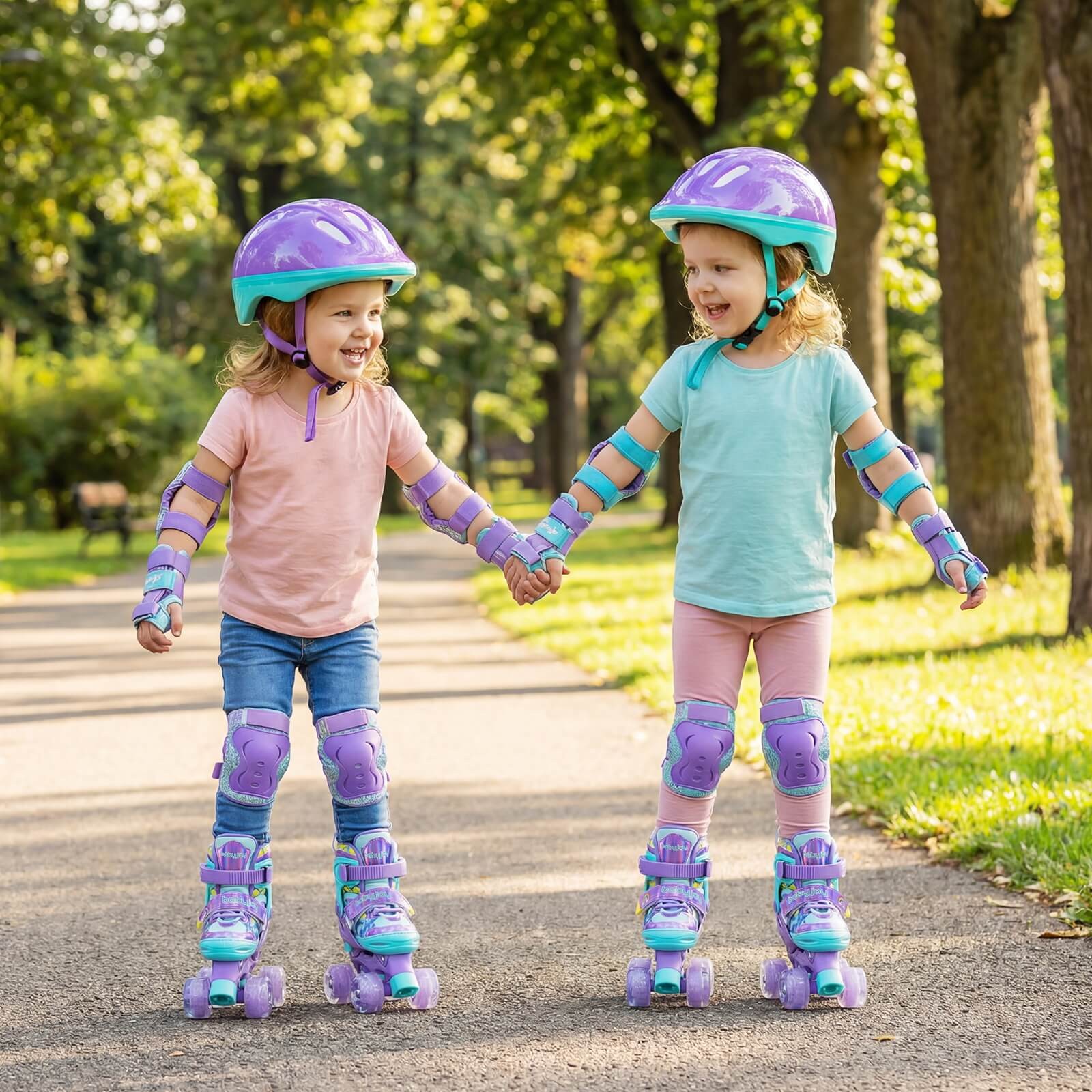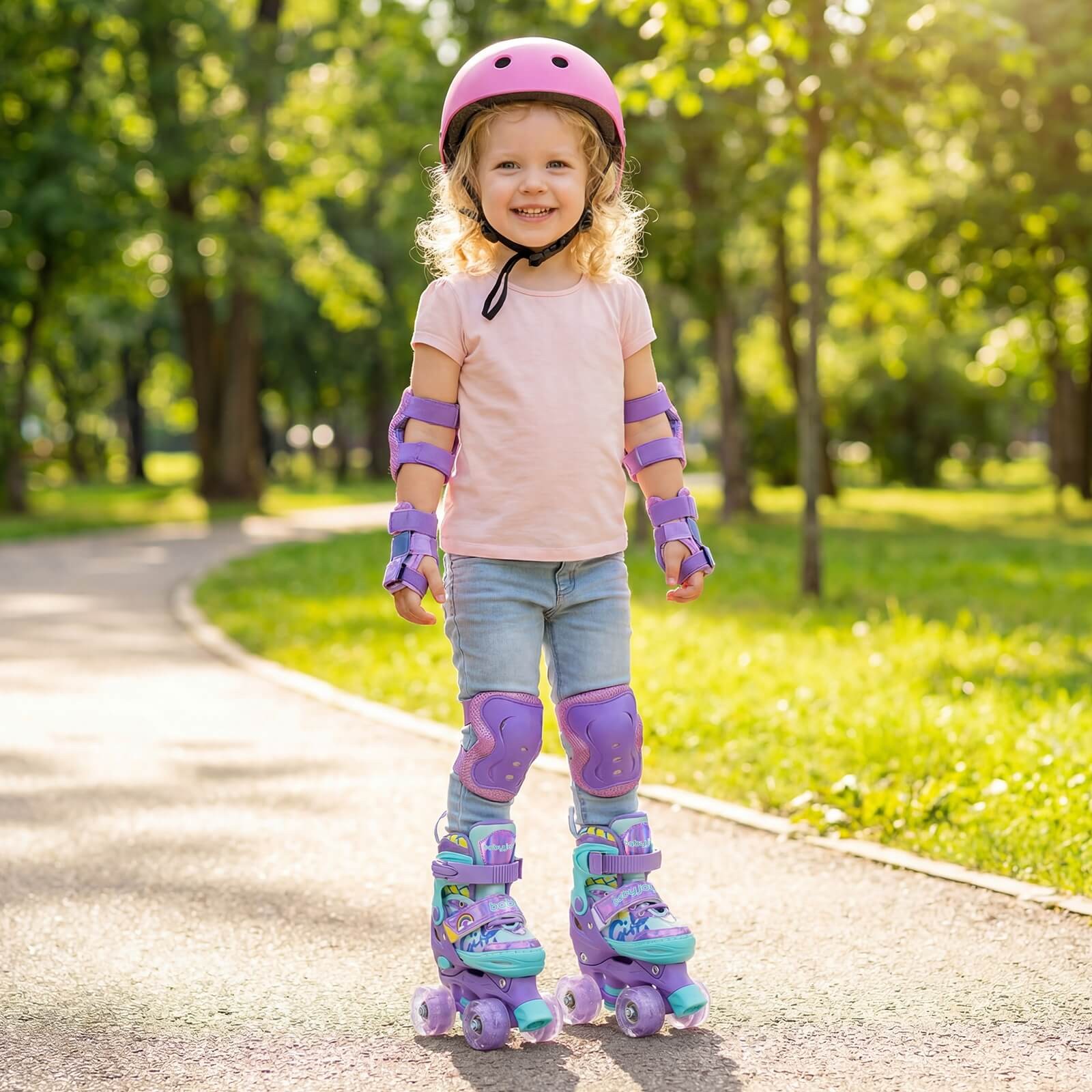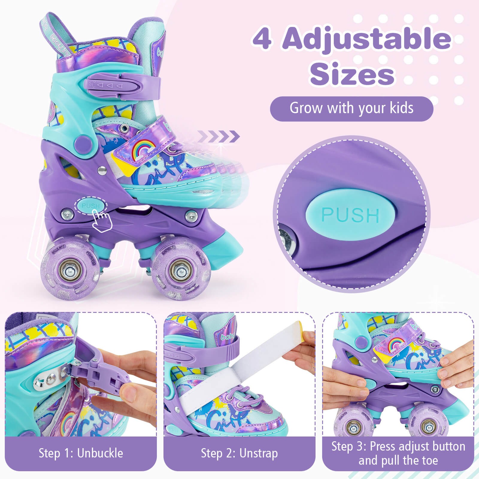 4 Sizes Adjustable Quad Skates w/Light-up Wheels Safety Protection for Beginners