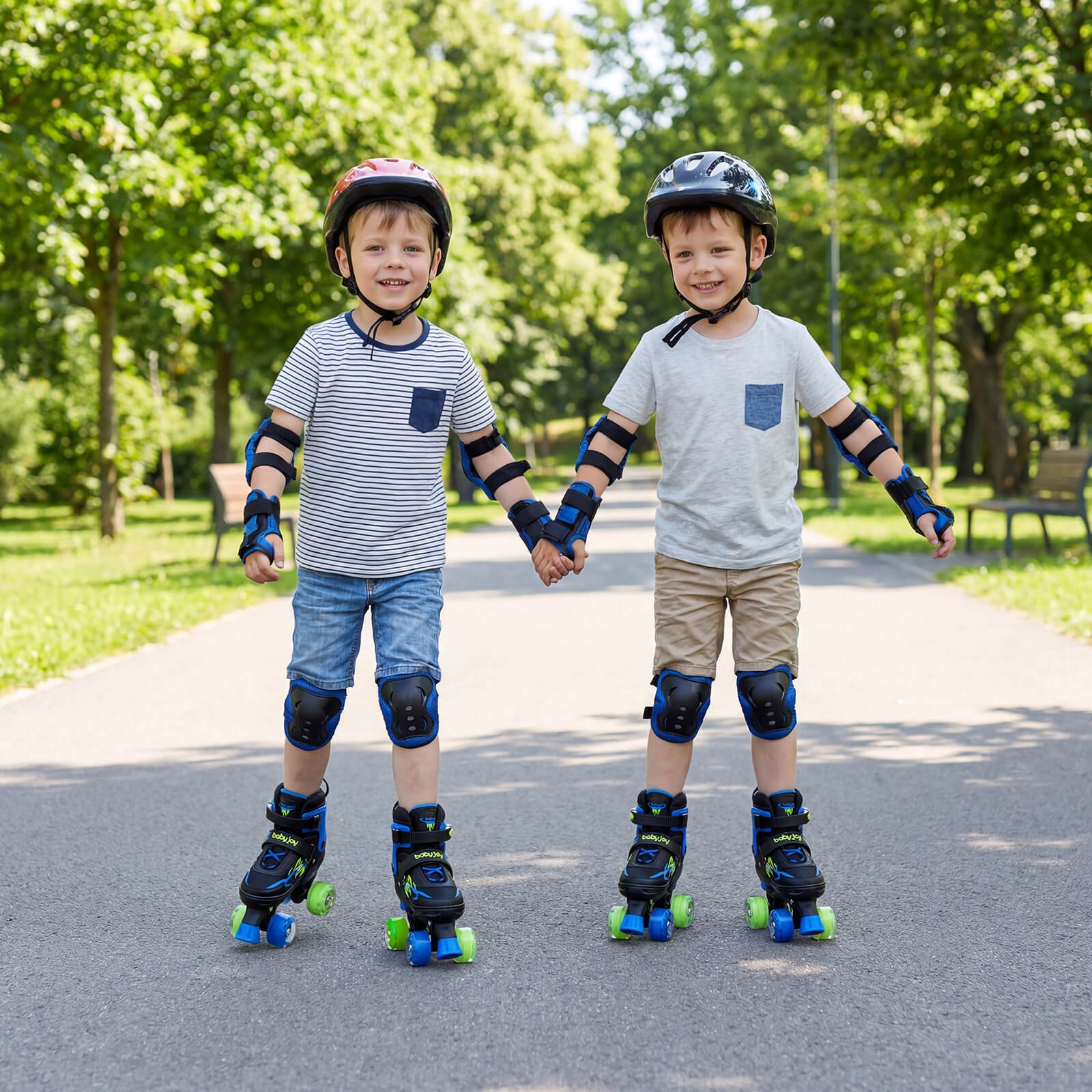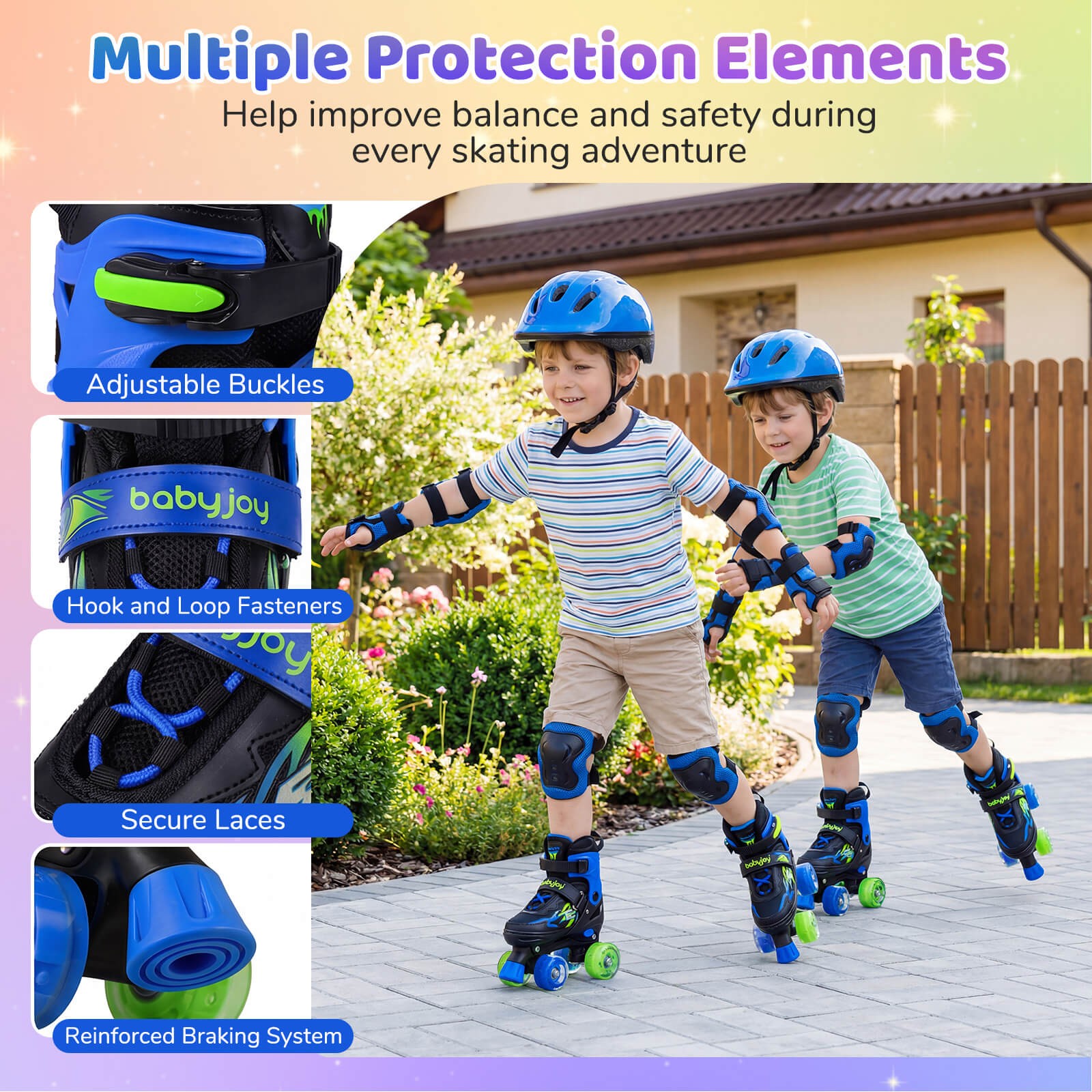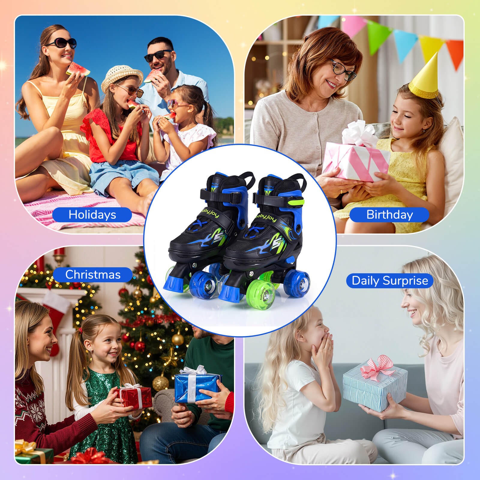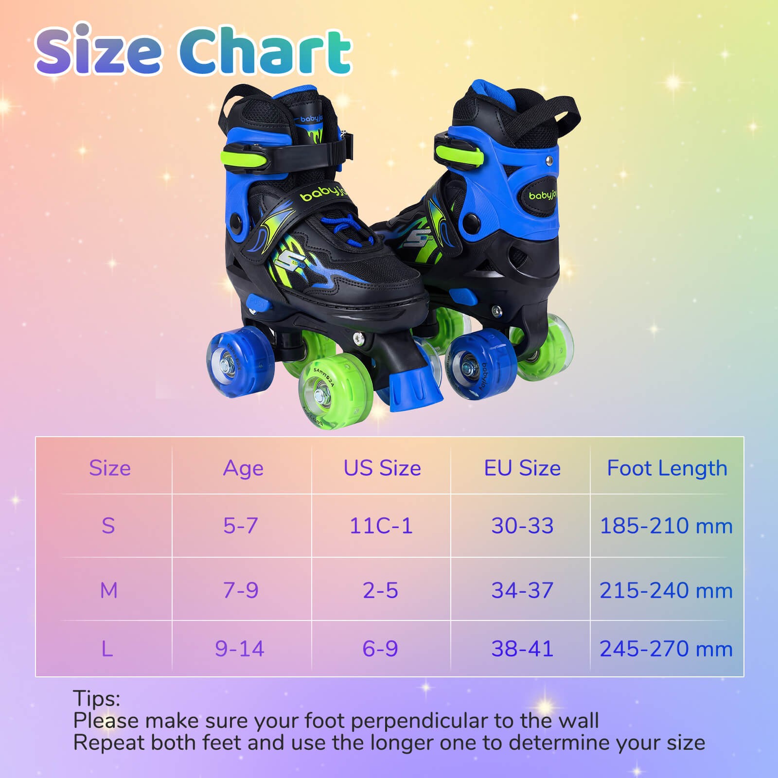 Kids Roller Skates 4 Sizes Adjustable Quad Skates w/Light-up Wheels for Ages 5-7