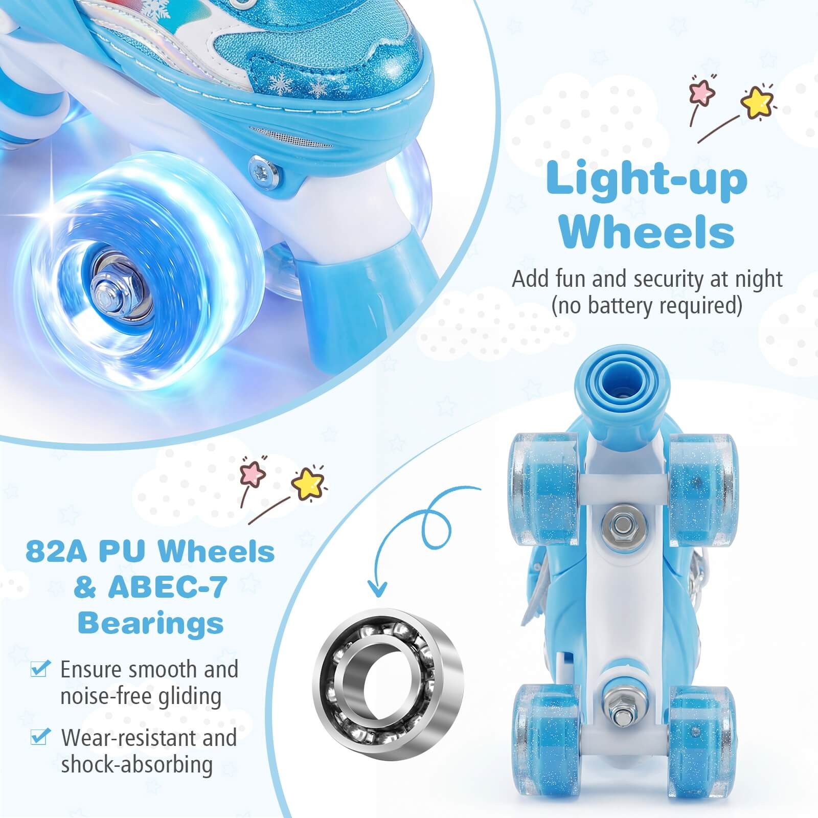 Kids Roller Skates 4 Sizes Adjustable Quad Skates w/Light-up Wheels for Sports
