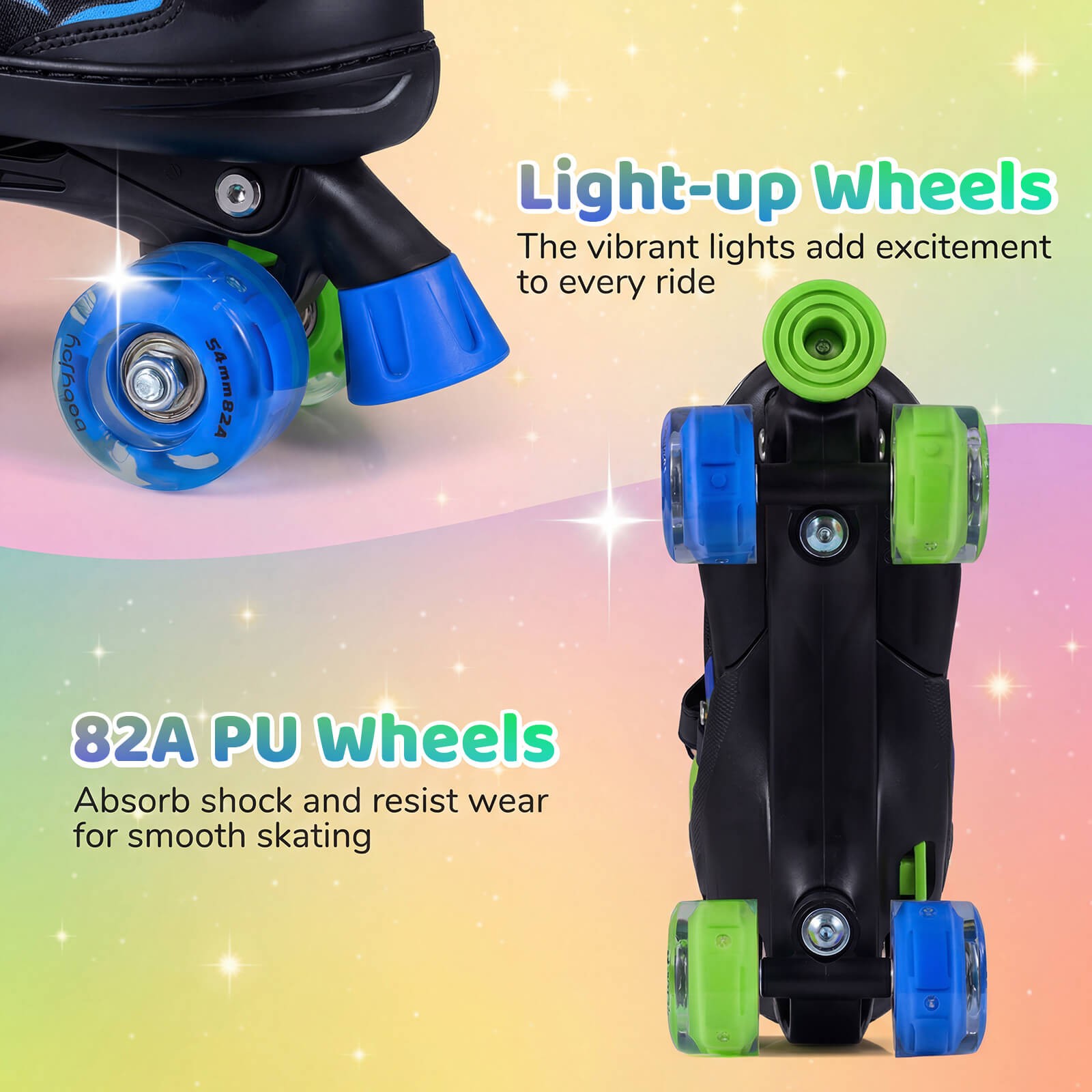 Kids Roller Skates for Teens, 4 Sizes Adjustable Quad Skates w/ Light-up Wheels