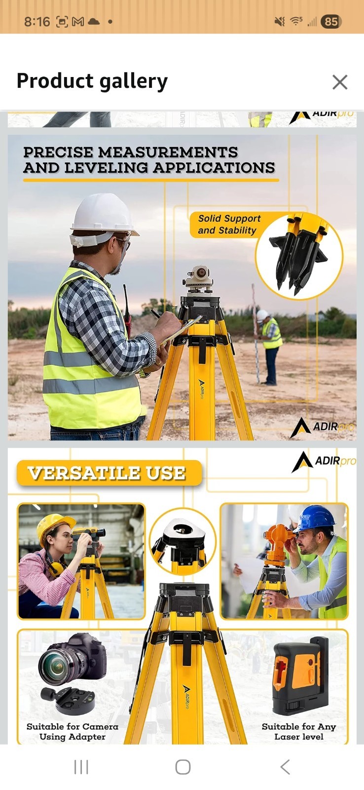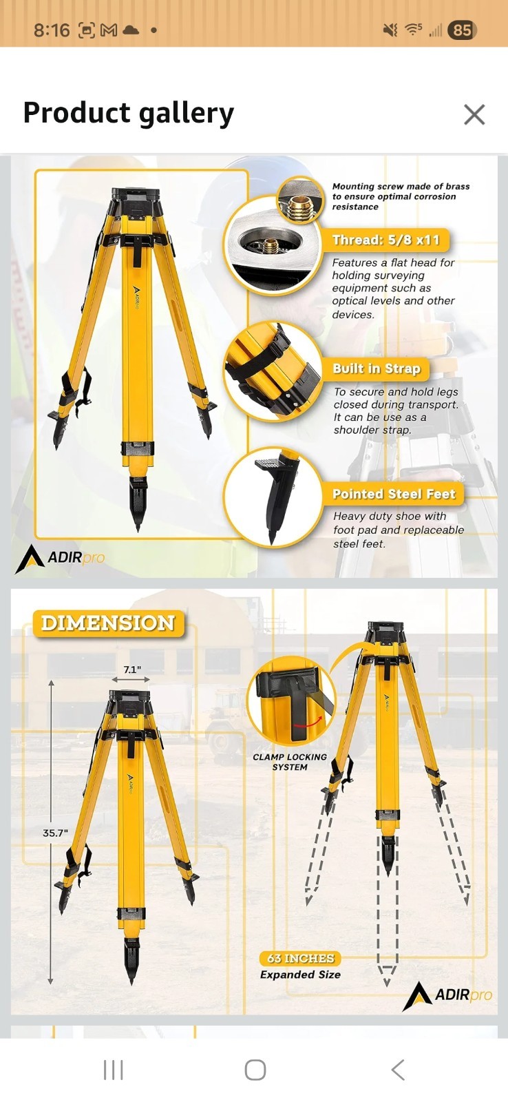 • Double Lock Heavy Section Aluminum Tripod Level Survey work Equipment Tripod