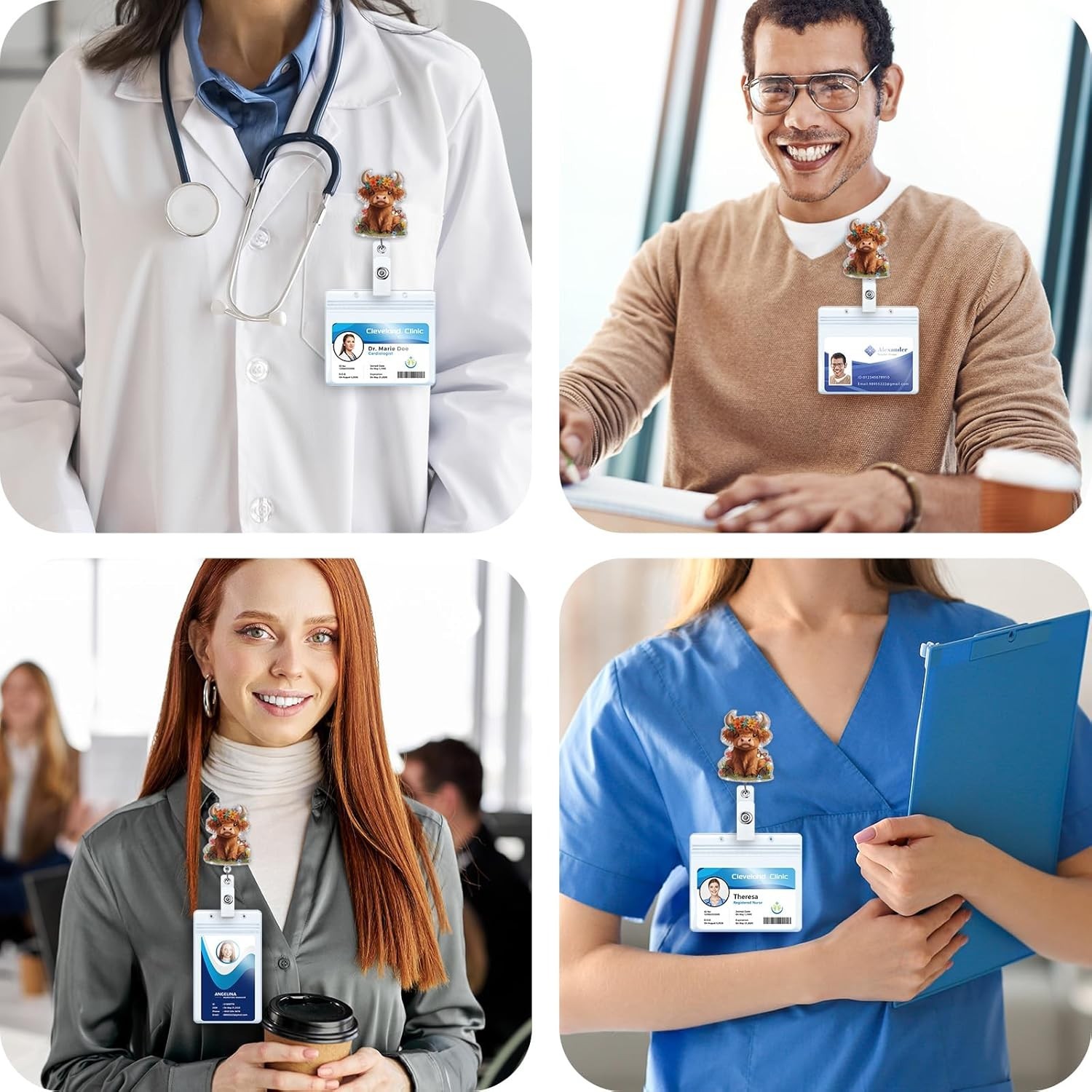 как выглядит Funny Badge Reel, Cute Highland Cow Retractable ID Card Badge Holder, Name Tag P фото