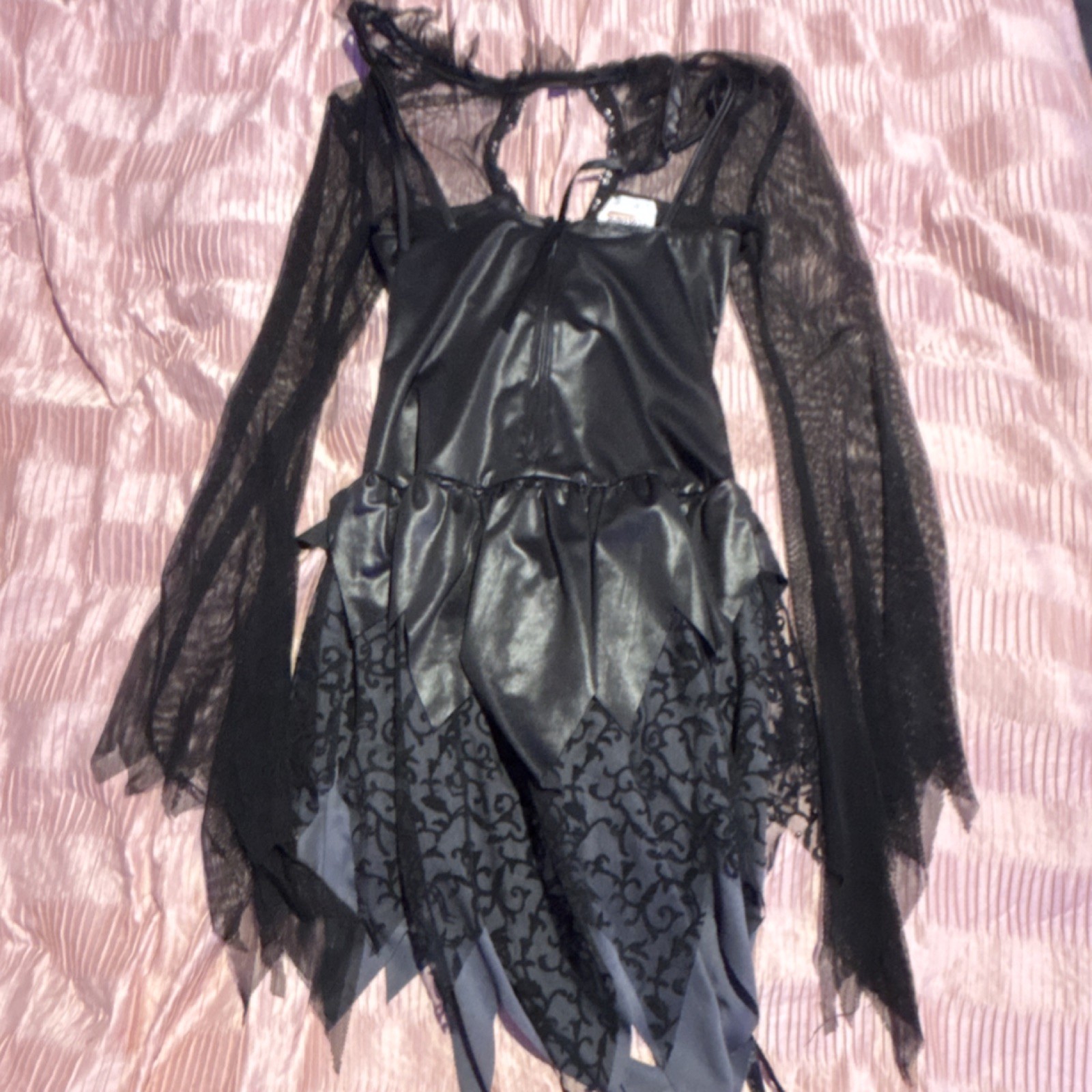 как выглядит California Costume Witch Dress Black Gray Sheer Sleeves Lace-Up Front фото