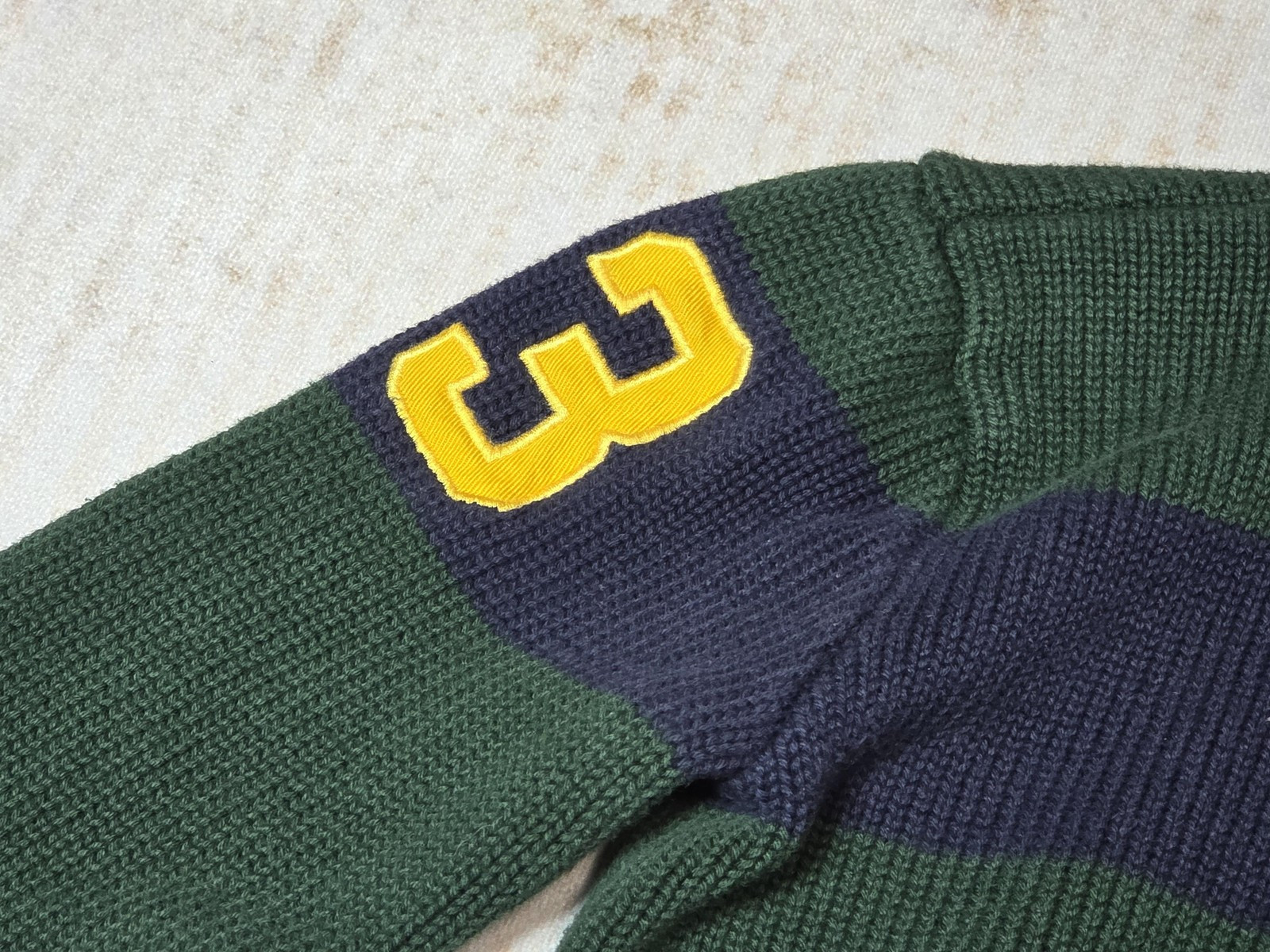 как выглядит Polo Ralph Lauren Sweater Boys 7 Green Navy Half Zip Knit Big Pony 3 Patch фото