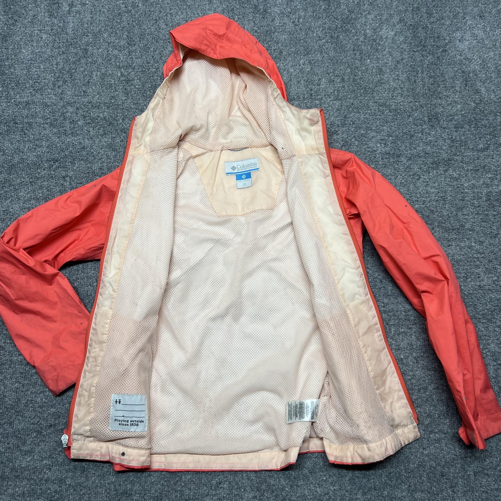 как выглядит Columbia Jacket Youth Medium 10/12 Orange Omni-Tech Hooded Rain Coat Waterproof фото