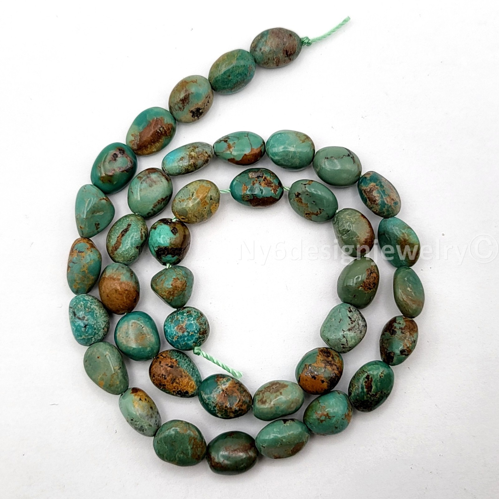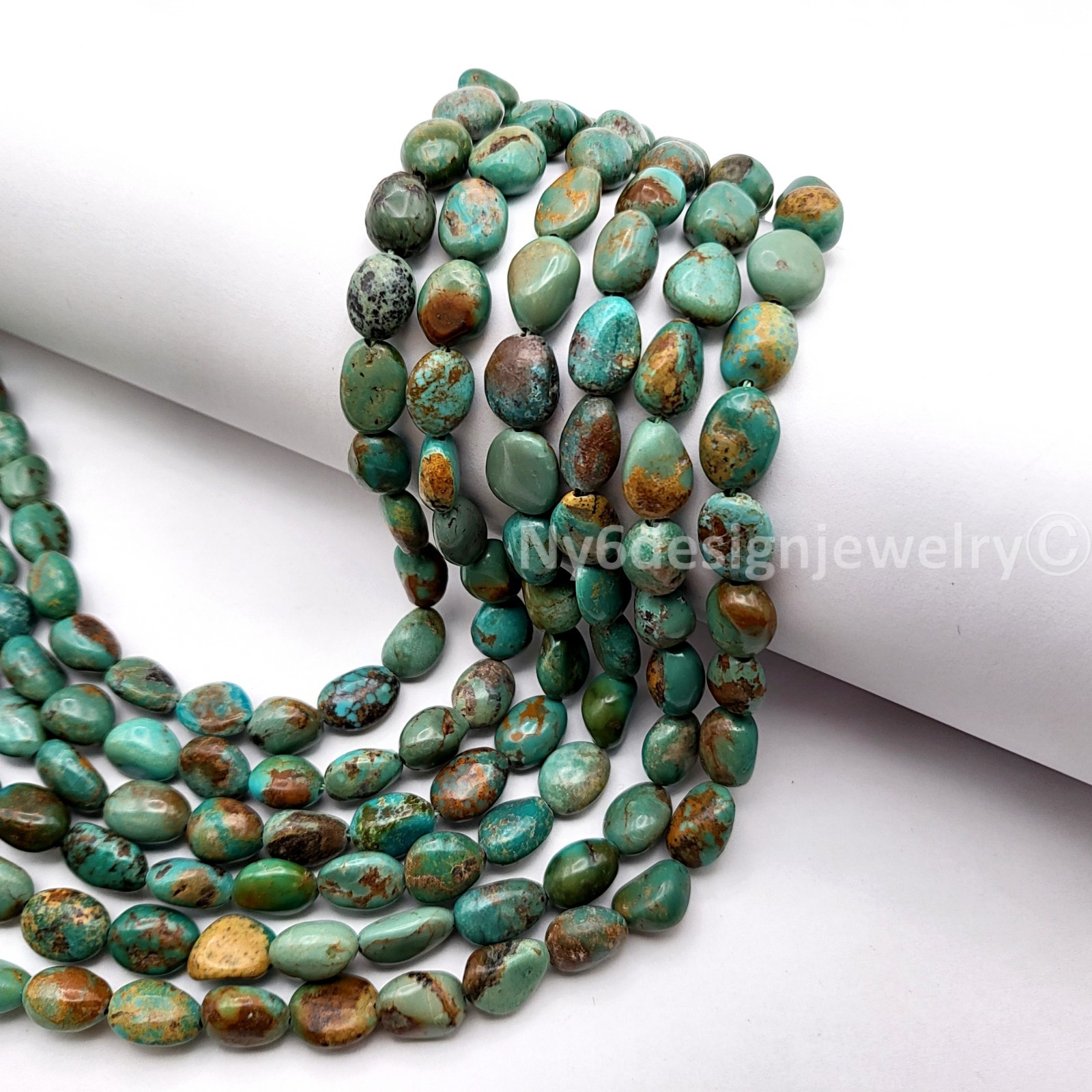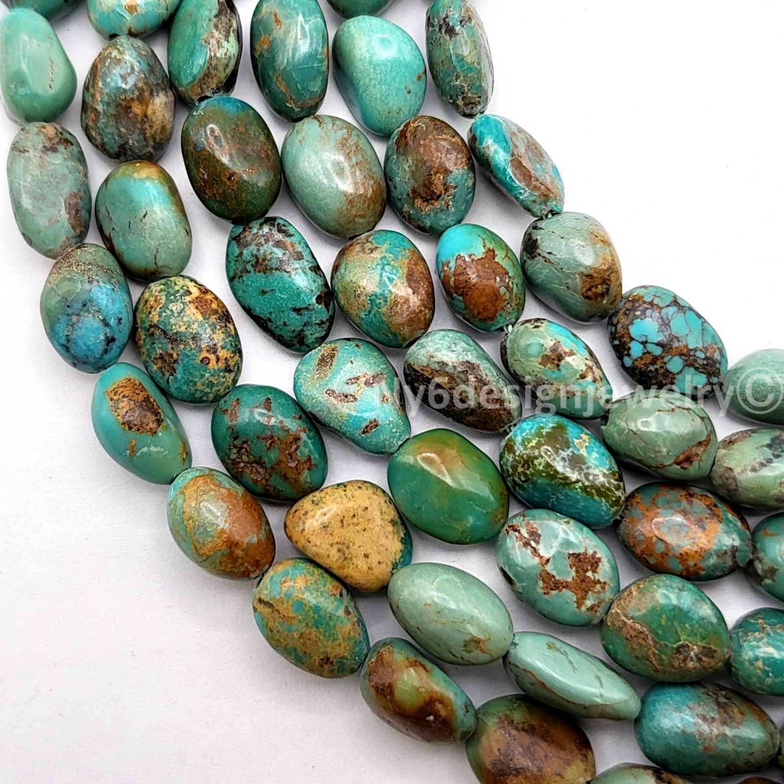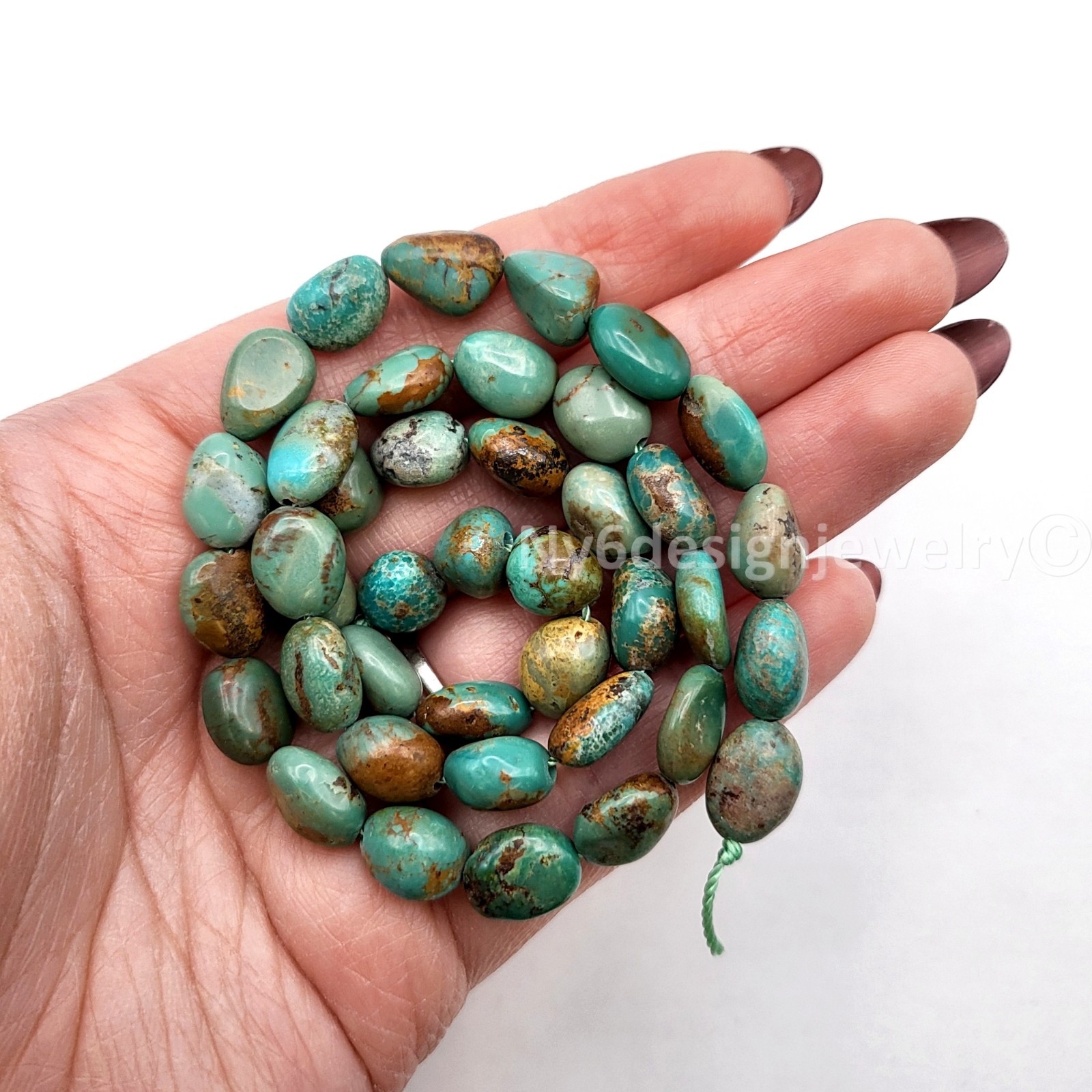 Natural Turquoise Nugget Beads 10x8mm , Smooth Gemstone Strand for Jewelry Maki