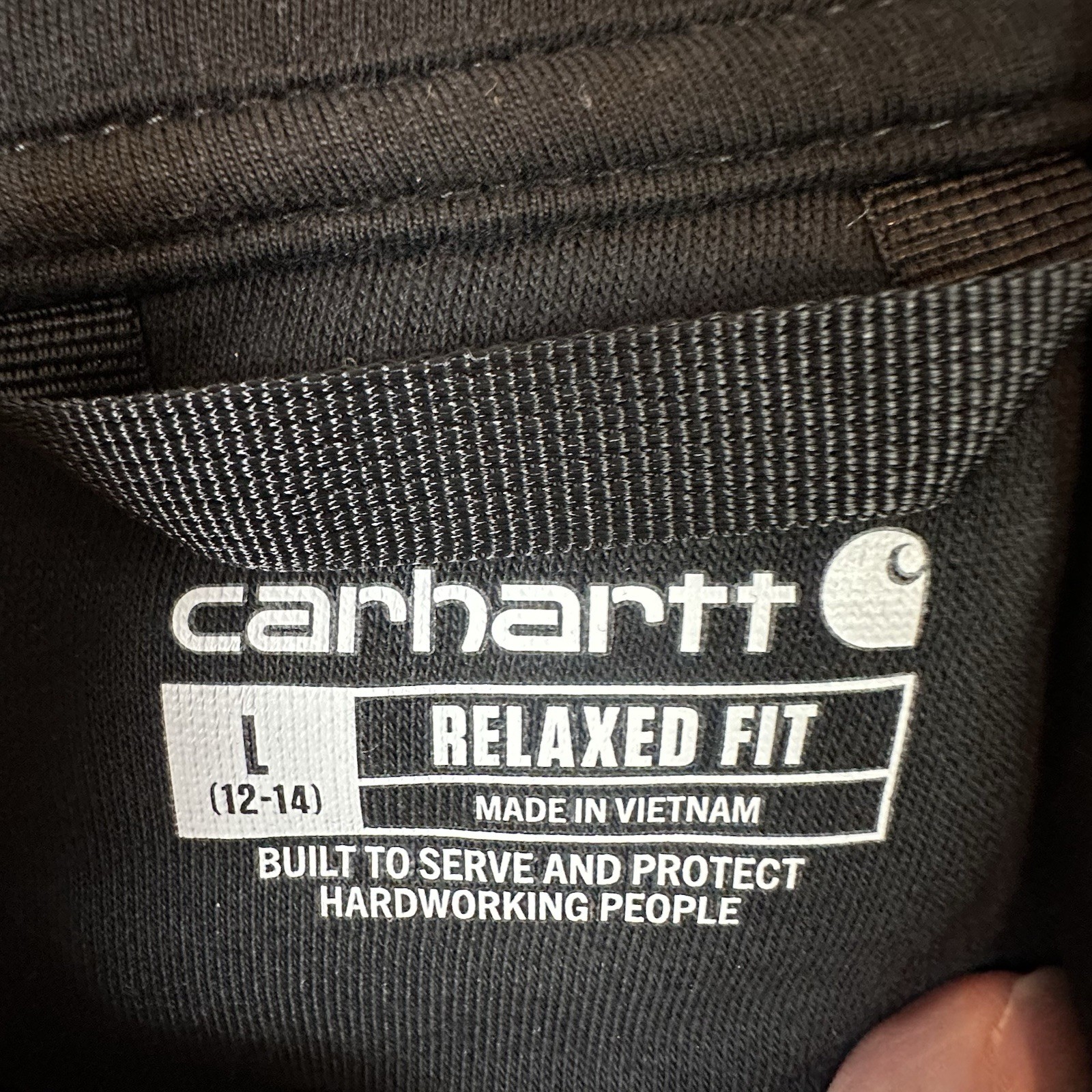 как выглядит Carhartt Hoodie Sweatshirt Womens L 12-14 Black Pullover Relaxed Fit NWT Logo фото