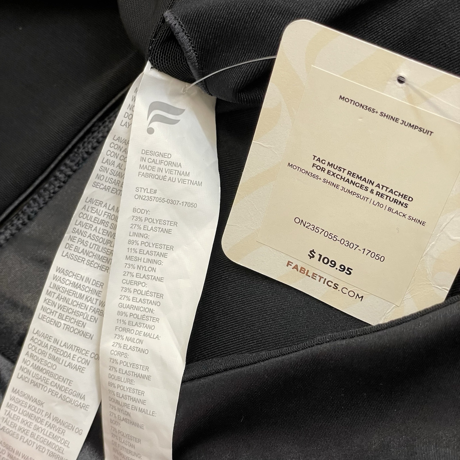 как выглядит Fabletics Motion365 Black Shine Athleisure Crop Ankle Sleeveless Jumpsuit sz L фото