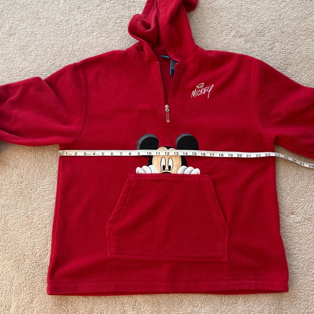 как выглядит Vintage Disney Red Fleece Mickey Mouse Quarter Zip Hooded Sweatshirt Size Large фото