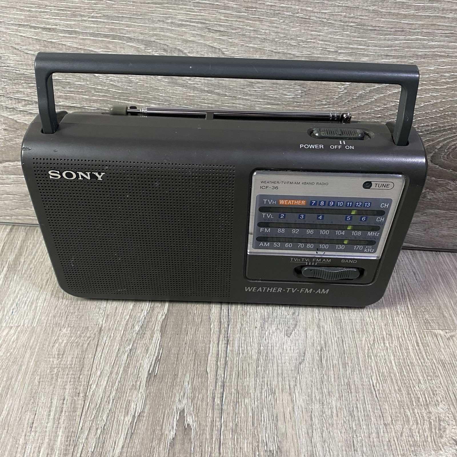 Sony ICF-36 Radio 4Band Weather TV AM/FM Black Tested Works Good With Handle