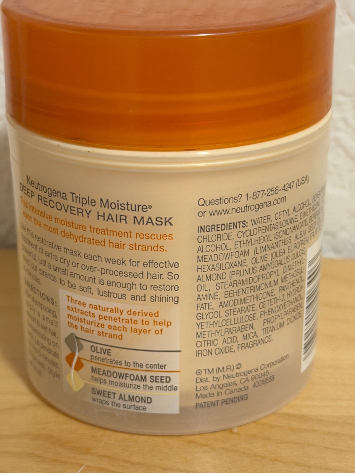 как выглядит Neutrogena Triple Moisture Deep Recovery Hair Mask Moisturizer 6 Oz 170g FULL фото