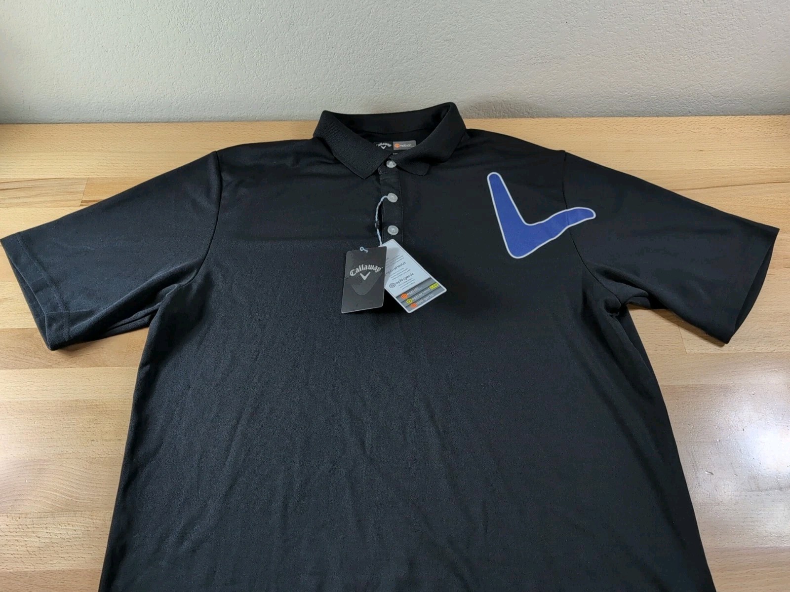 как выглядит Callaway Opti Dri Polo Shirt Mens Large Black Big Logo Golf Performance NWT фото