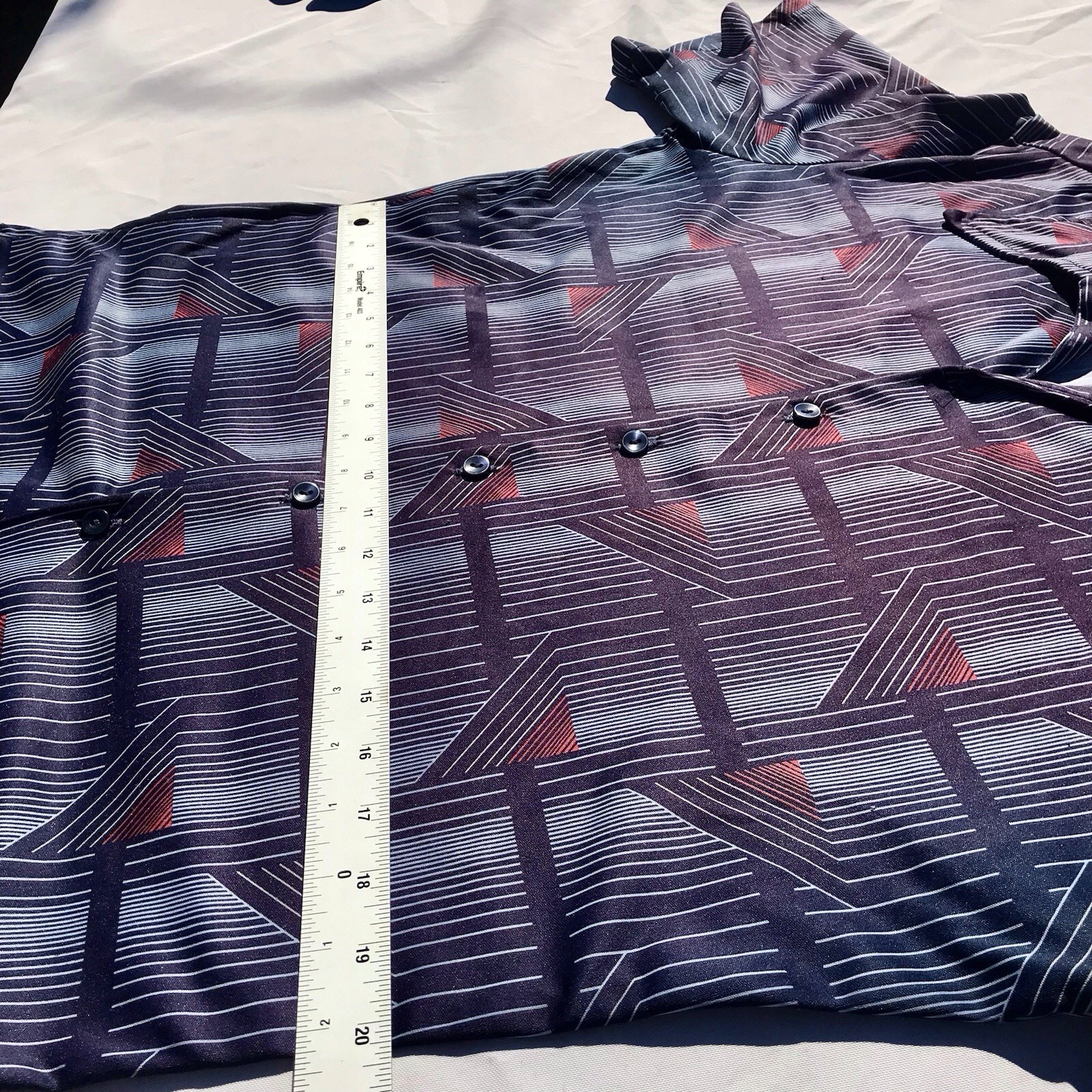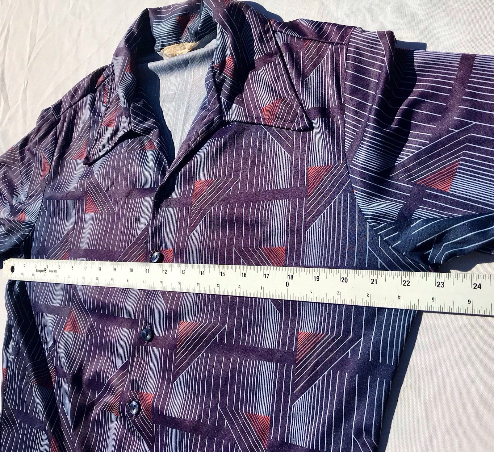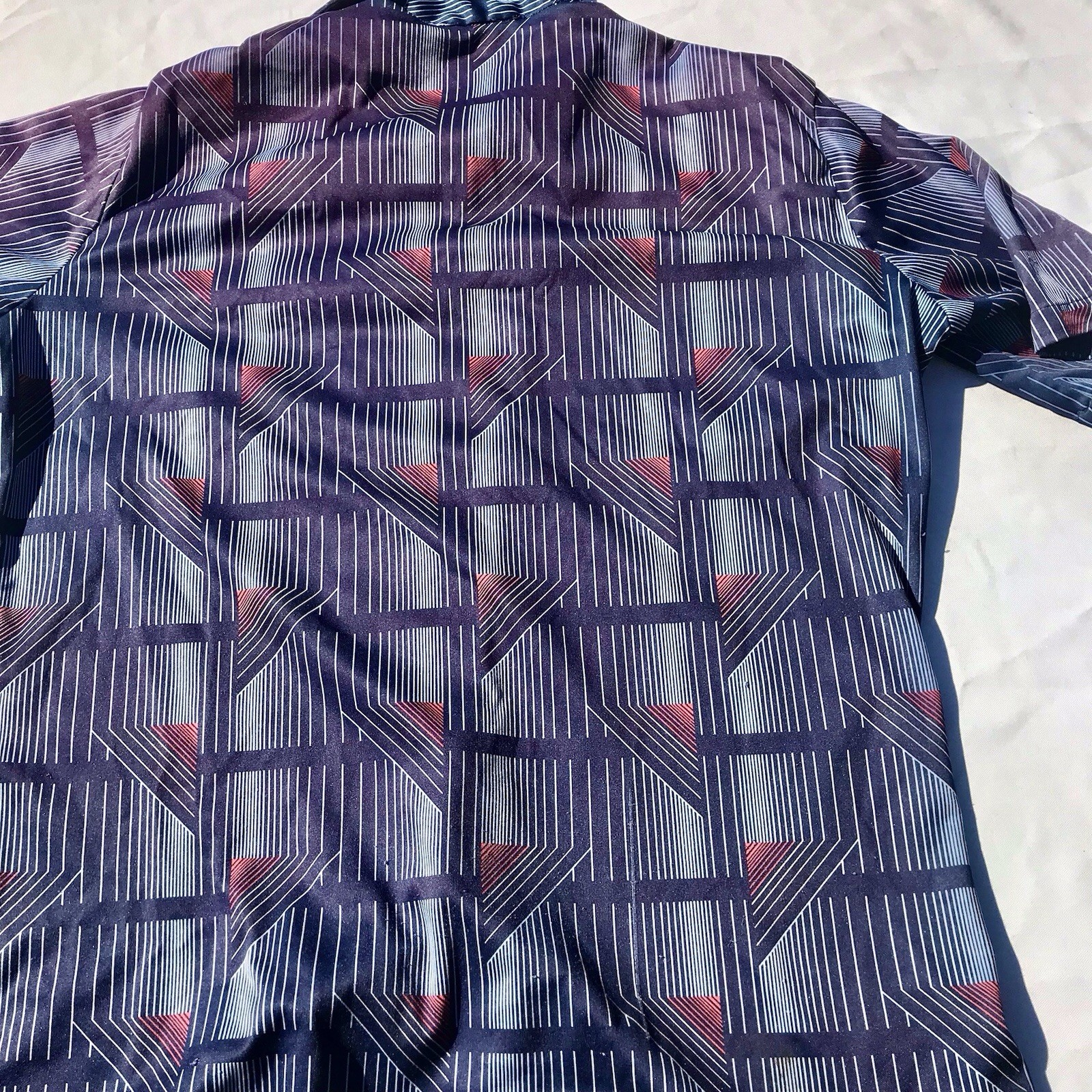 как выглядит Vtg 70s Styled in California Button Up Poly Shirt Men s S M Blue Disco Geo Retro фото