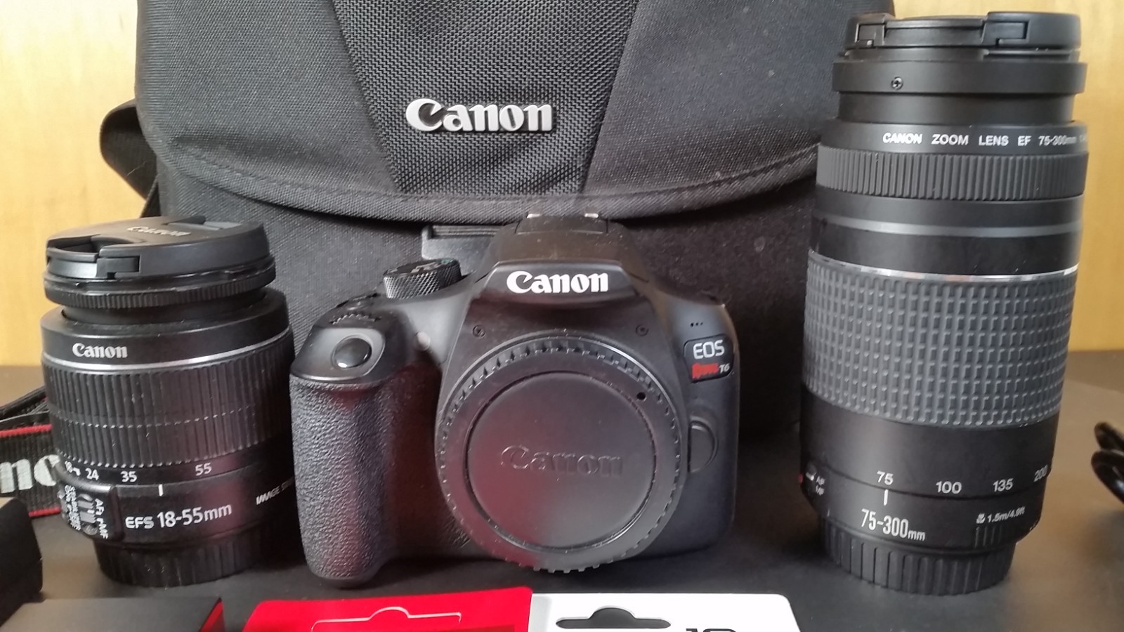 как выглядит Canon EOS Rebel T6 DSLR Camera Kit Black with 18-55mm 75-300mm Lenses - Bundle фото