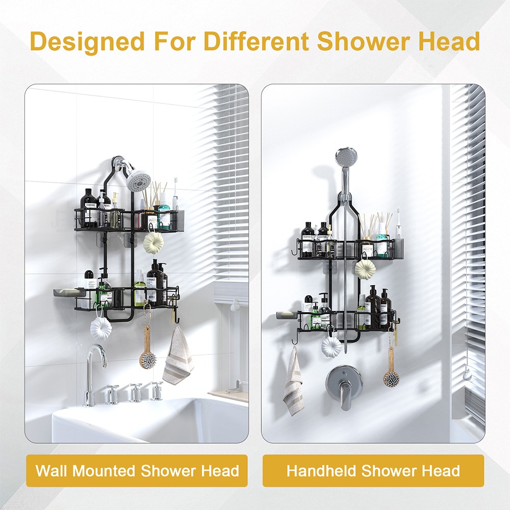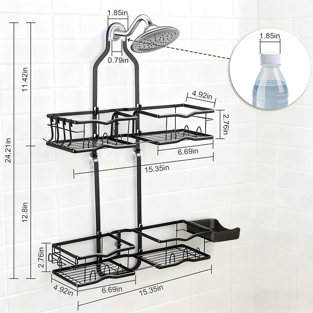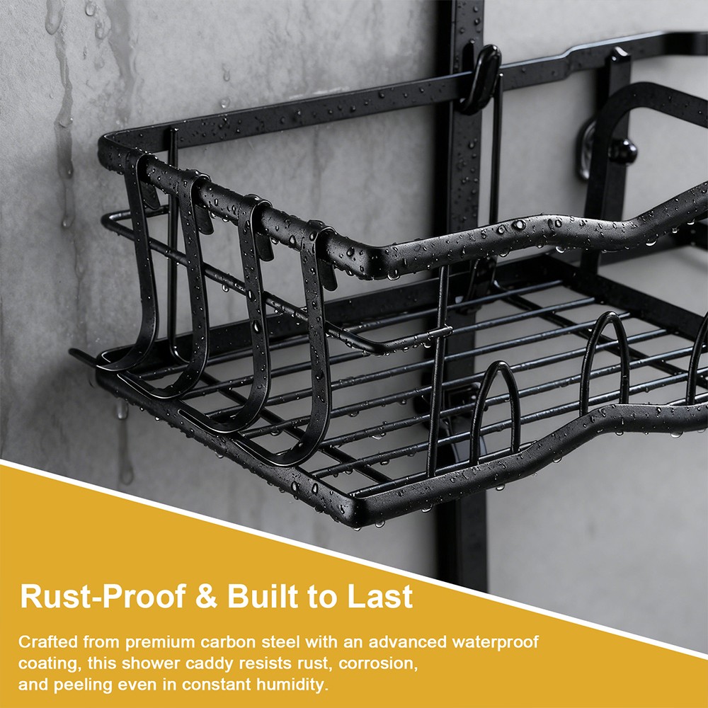 Shower Rack Storage No Drilling Rust-Proof Black Metal Bath Shelf Load Bearing