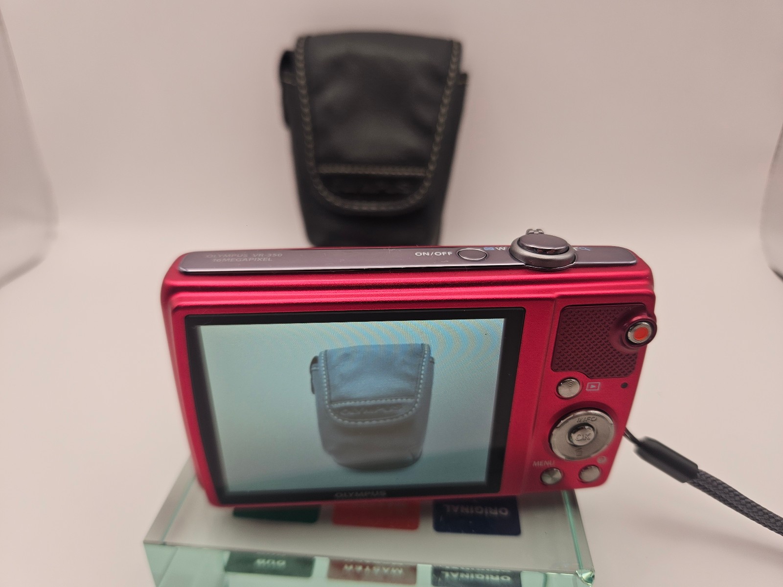 как выглядит Olympus VR-350 Red 16MP Digital Camera battery 4bg card case photo red 10x zoom фото