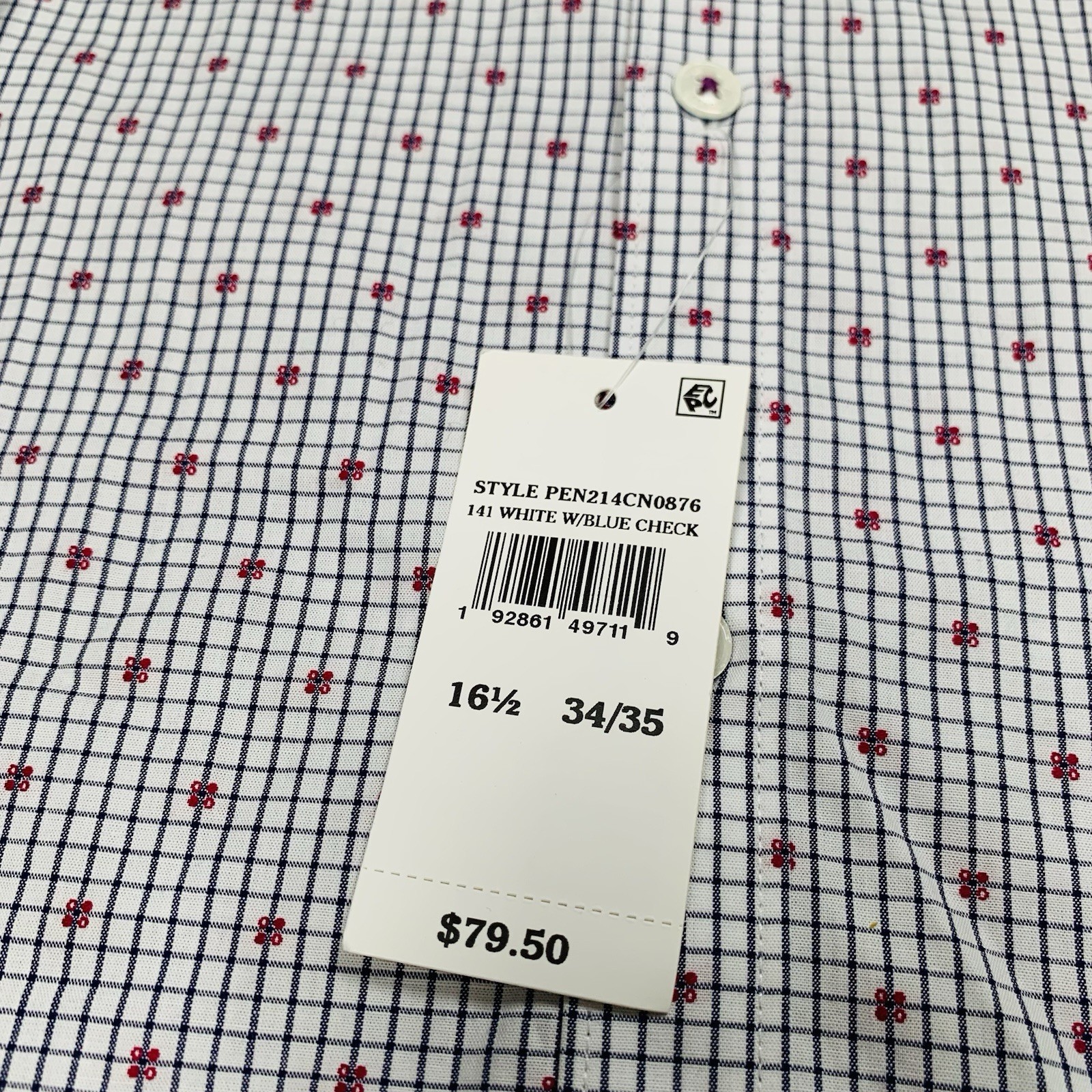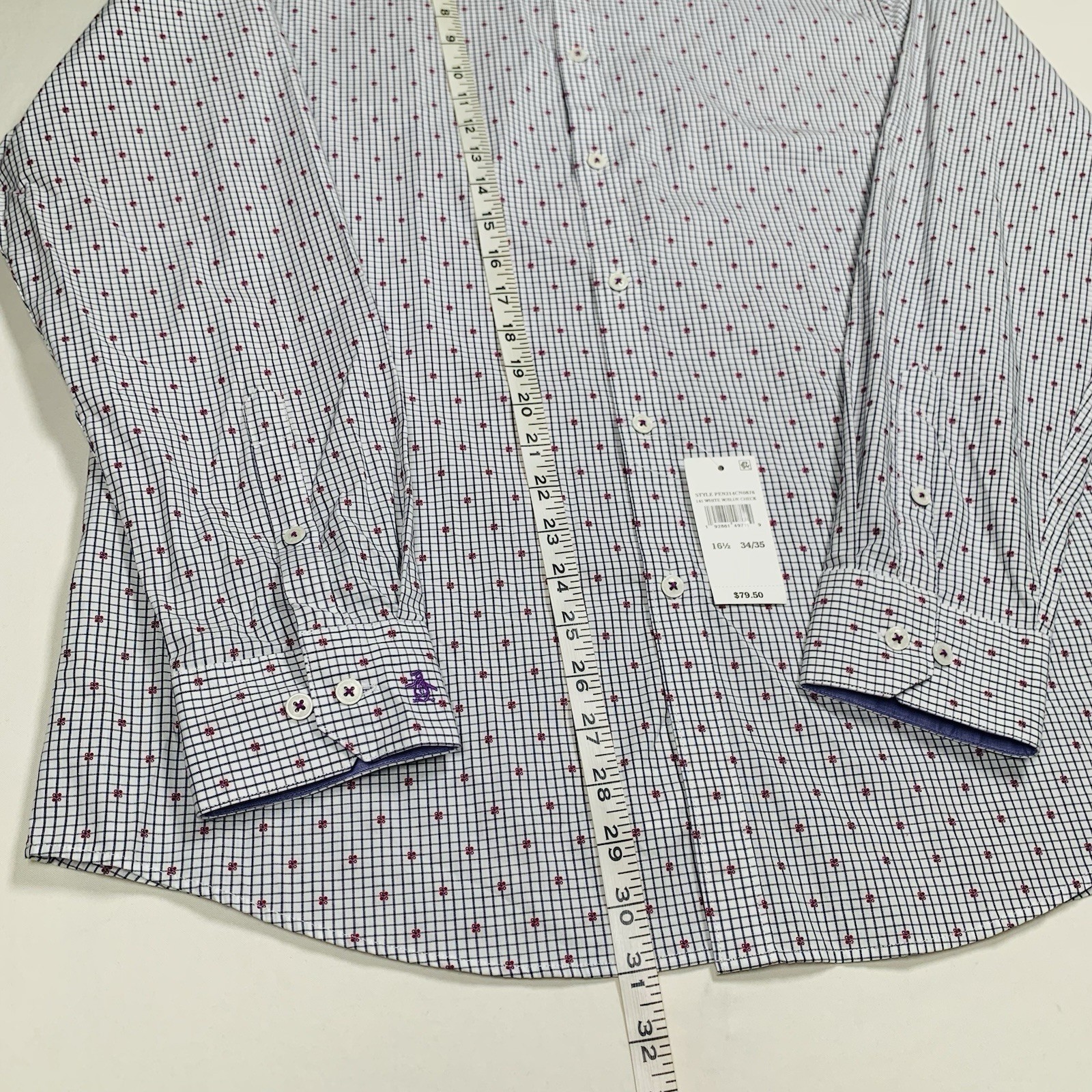 как выглядит Penguin Button Down Shirt Mens L 16.5 34/35 Heritage Slim Fit White/Blue Check фото