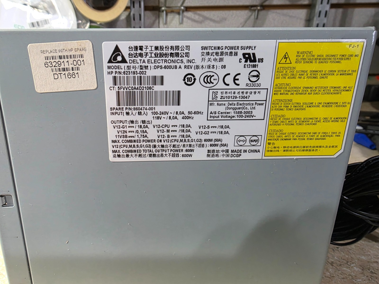 MPN: DPS600UB, 623193-002, 860474-001