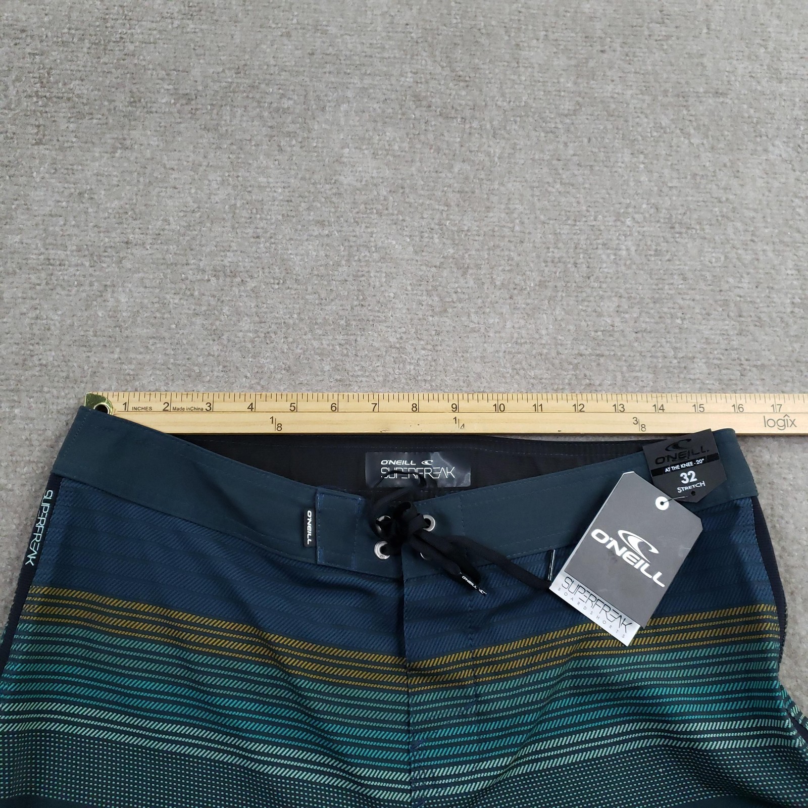 как выглядит ONeill Superfreak Board Shorts Mens 32 Blue Striped Drawstring Back Pocket фото