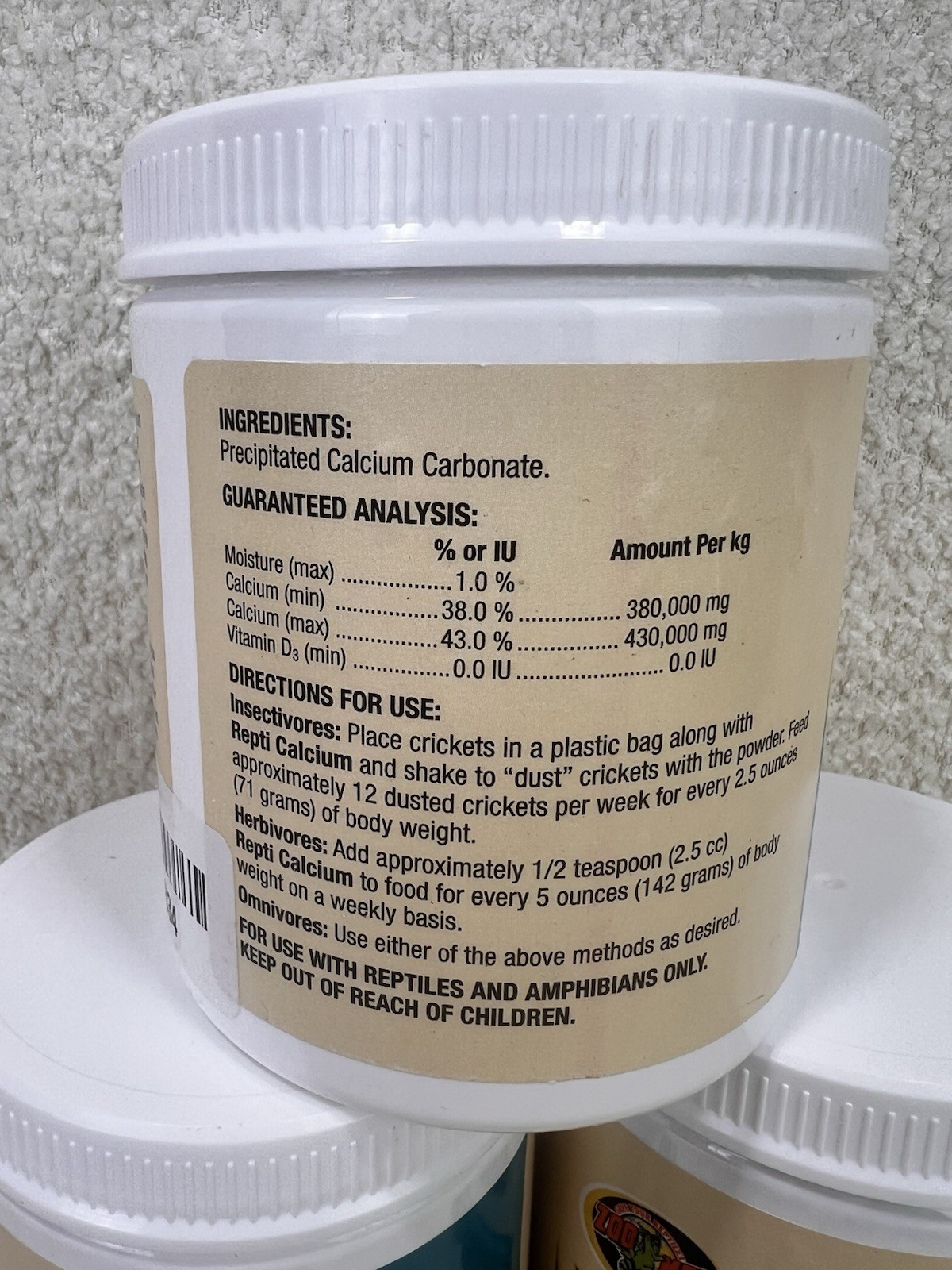 3 Zoo Med Repti Calcium without Vitamin D3 Reptile Supplement 8oz Exp 07/2026