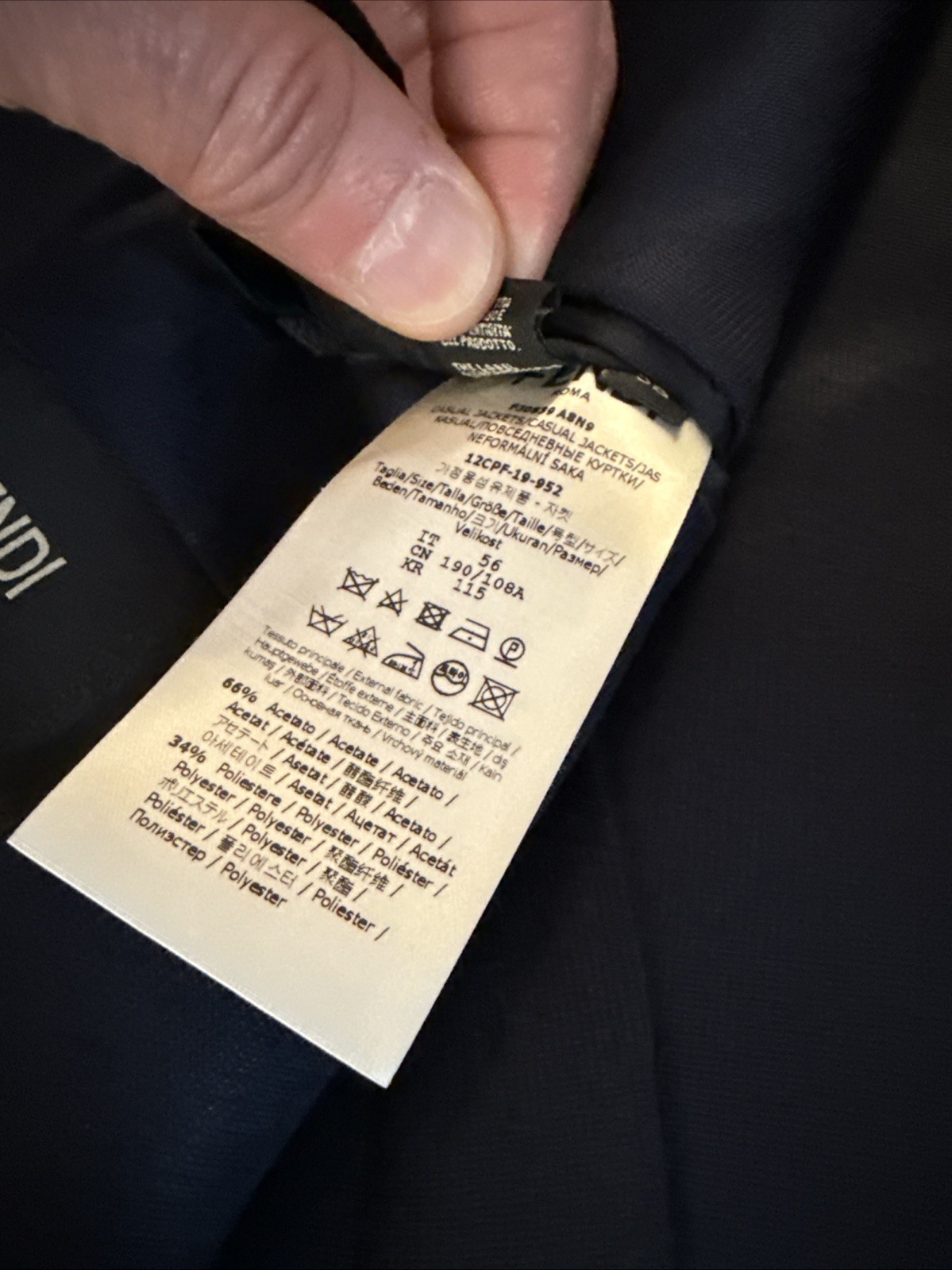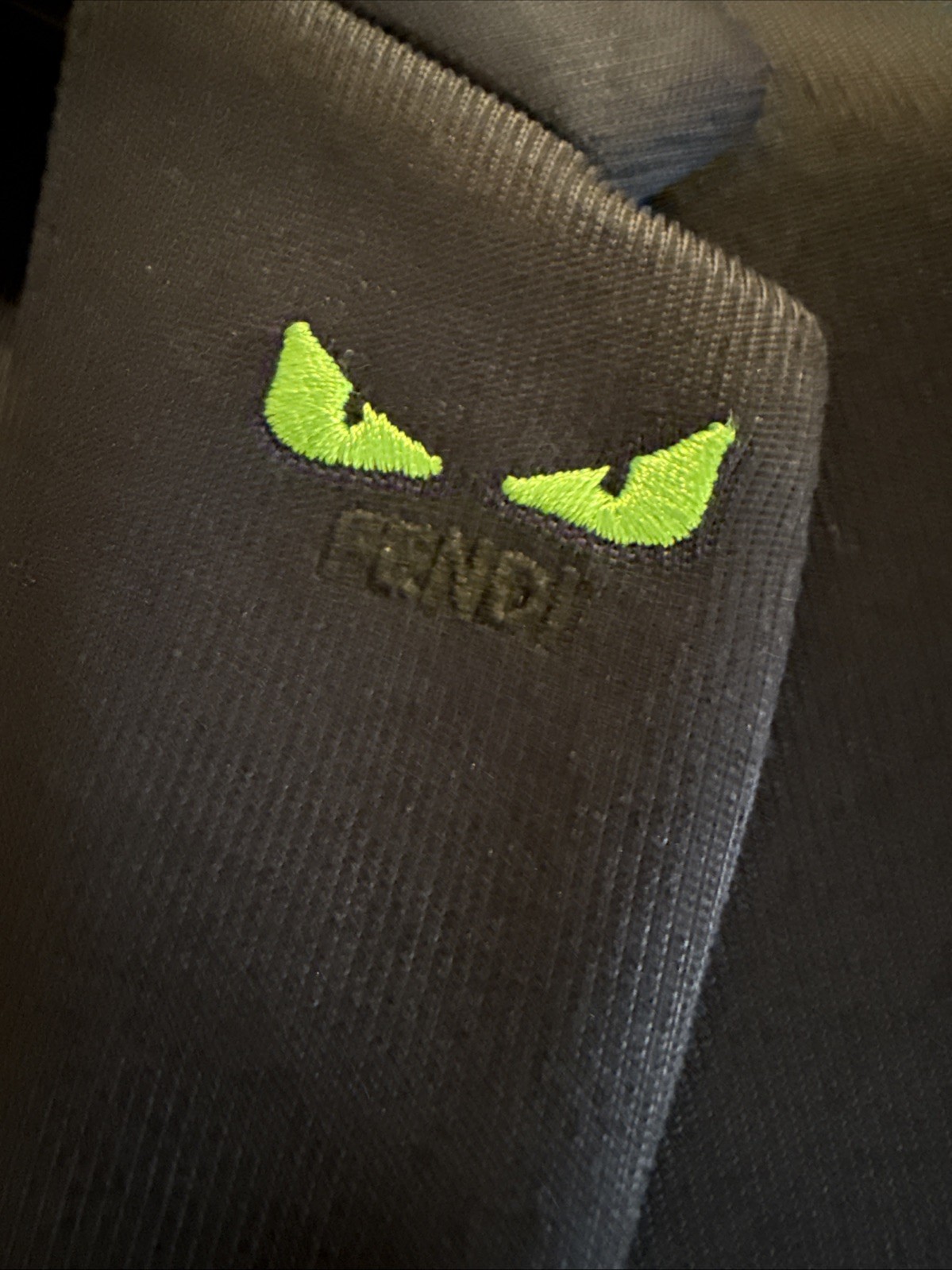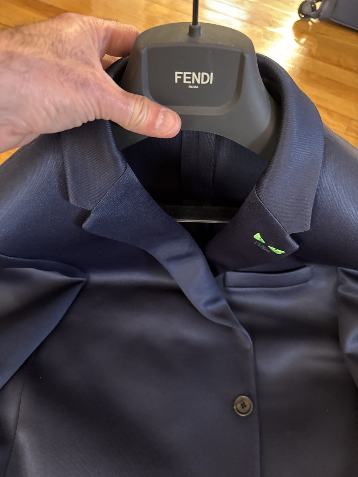 как выглядит FENDI Blue Blazer W/ Green Monster Eyes Logo Sz EU 56 Slim Fit Like USA 42-44 фото