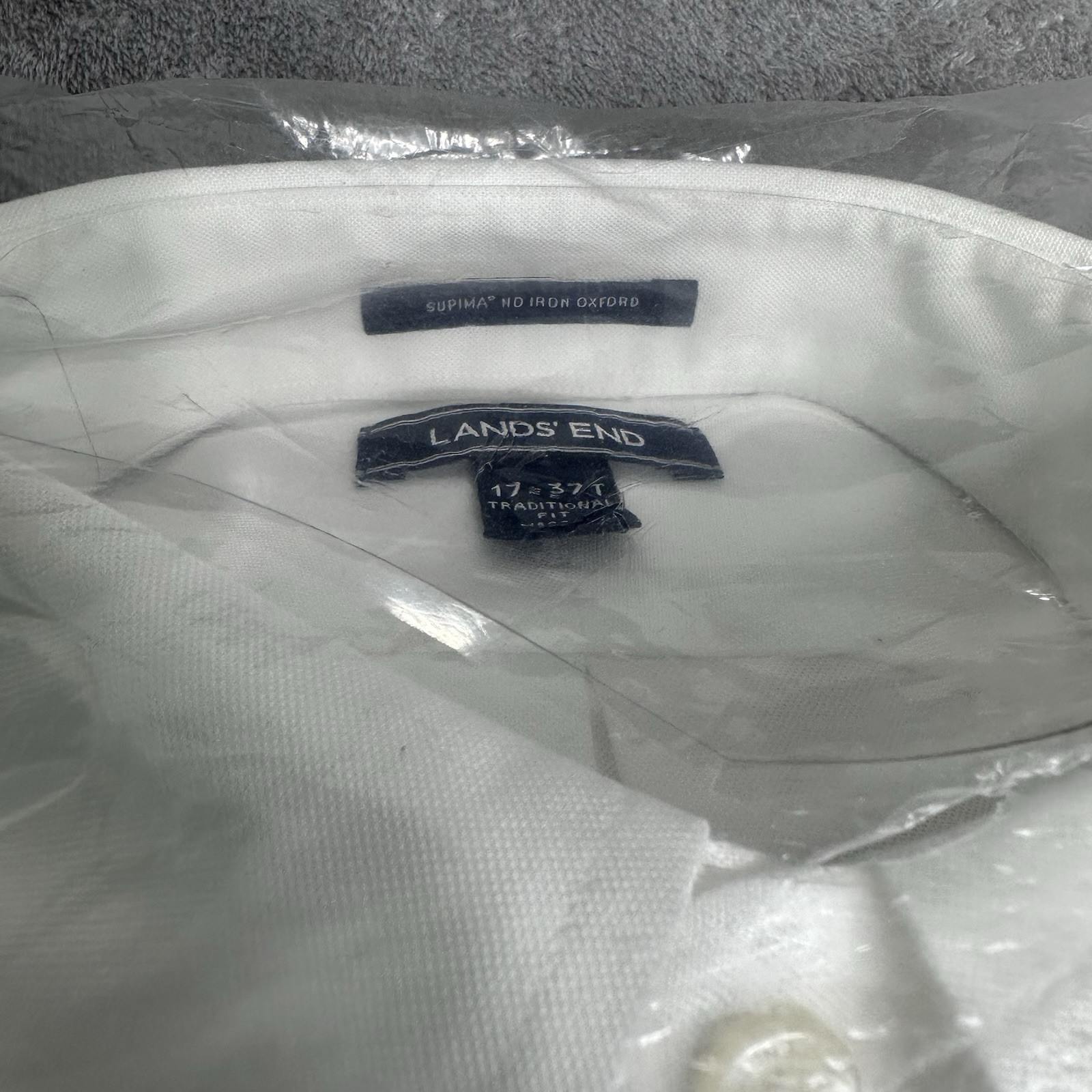 как выглядит Lands End Traditional Fit Supima Cotton White Oxford Dress Shirt Size 17-37 T фото