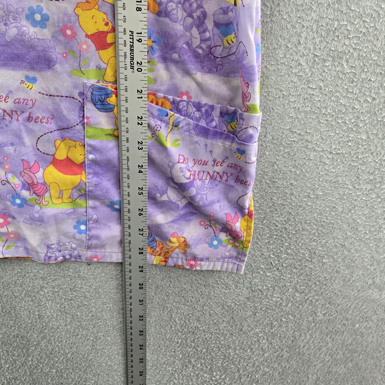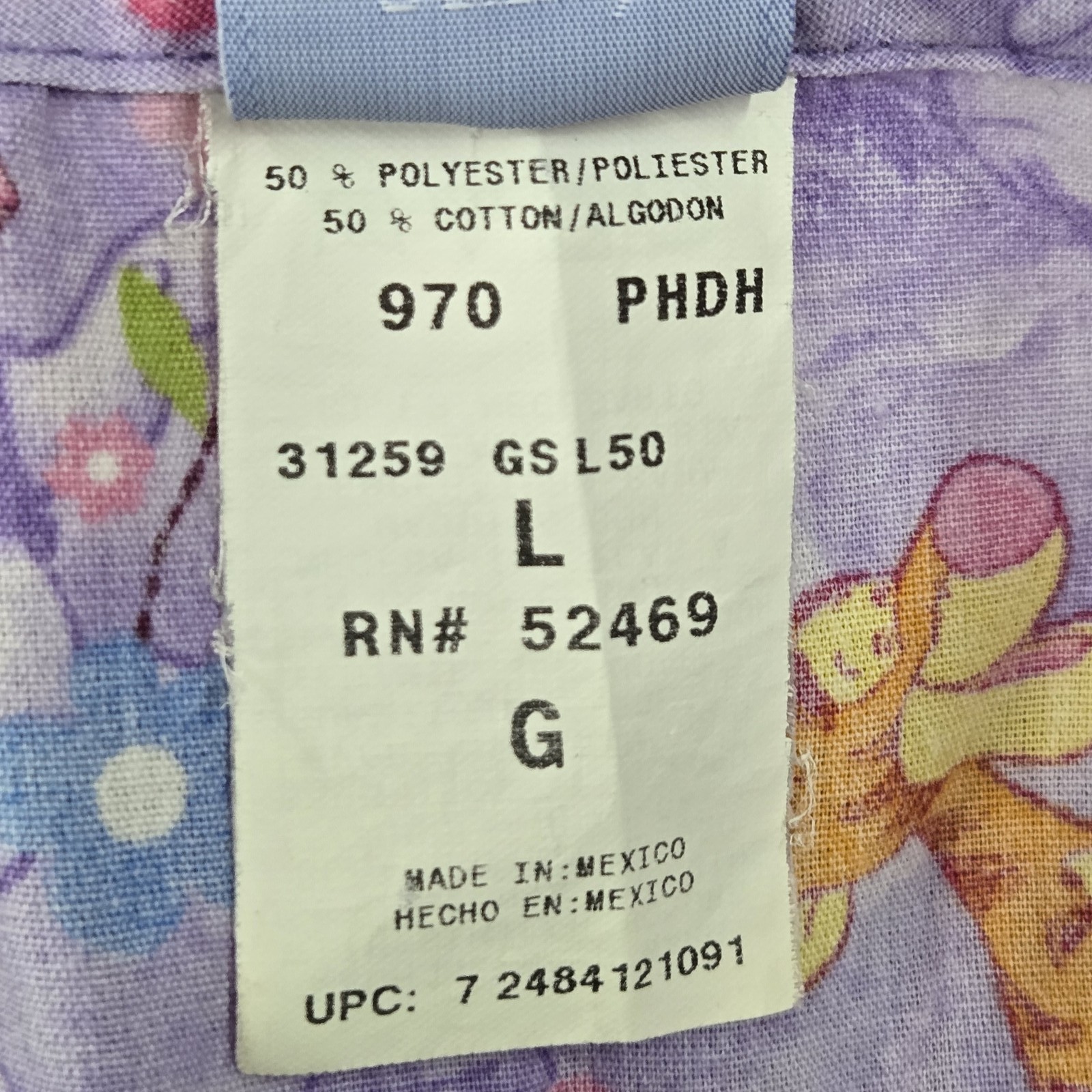 Disney Women Scrub Top L Purple Graphic Winnie Pooh Cartoon Print Whimsical