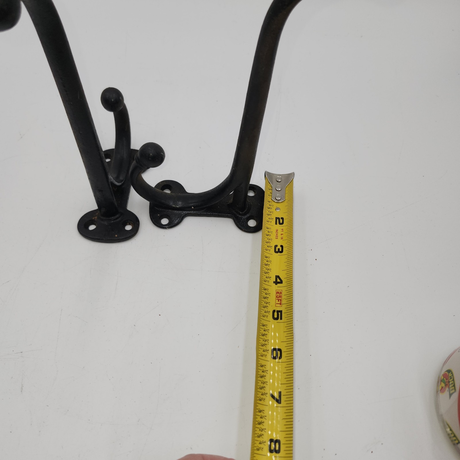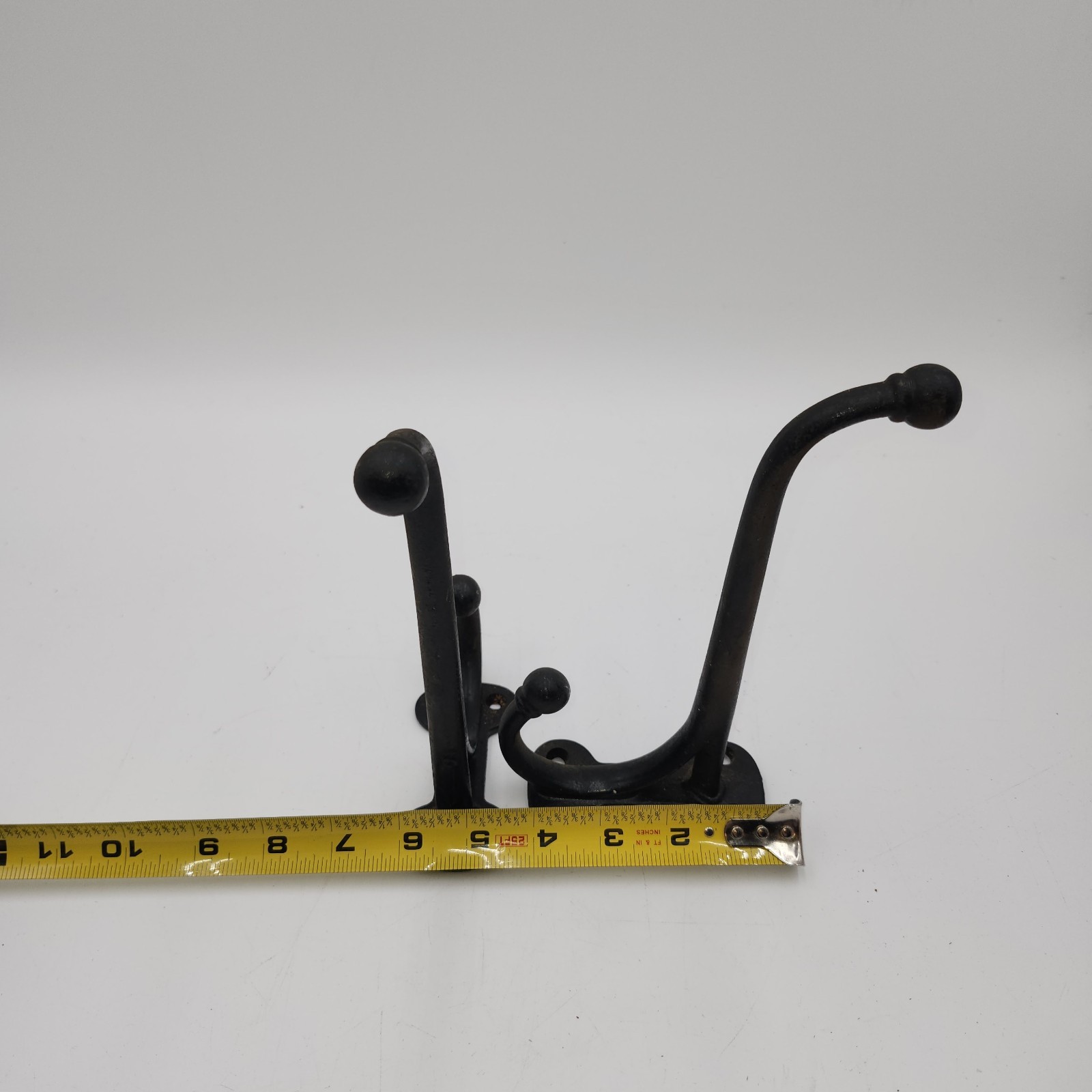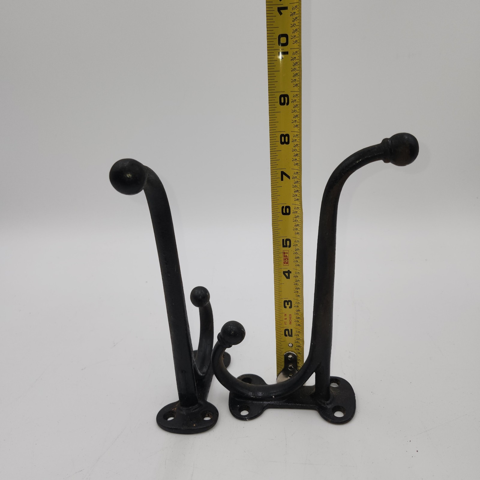 как выглядит 2 cast iron heavy duty fat wall hooks hook coat hat hall tree large 8" фото