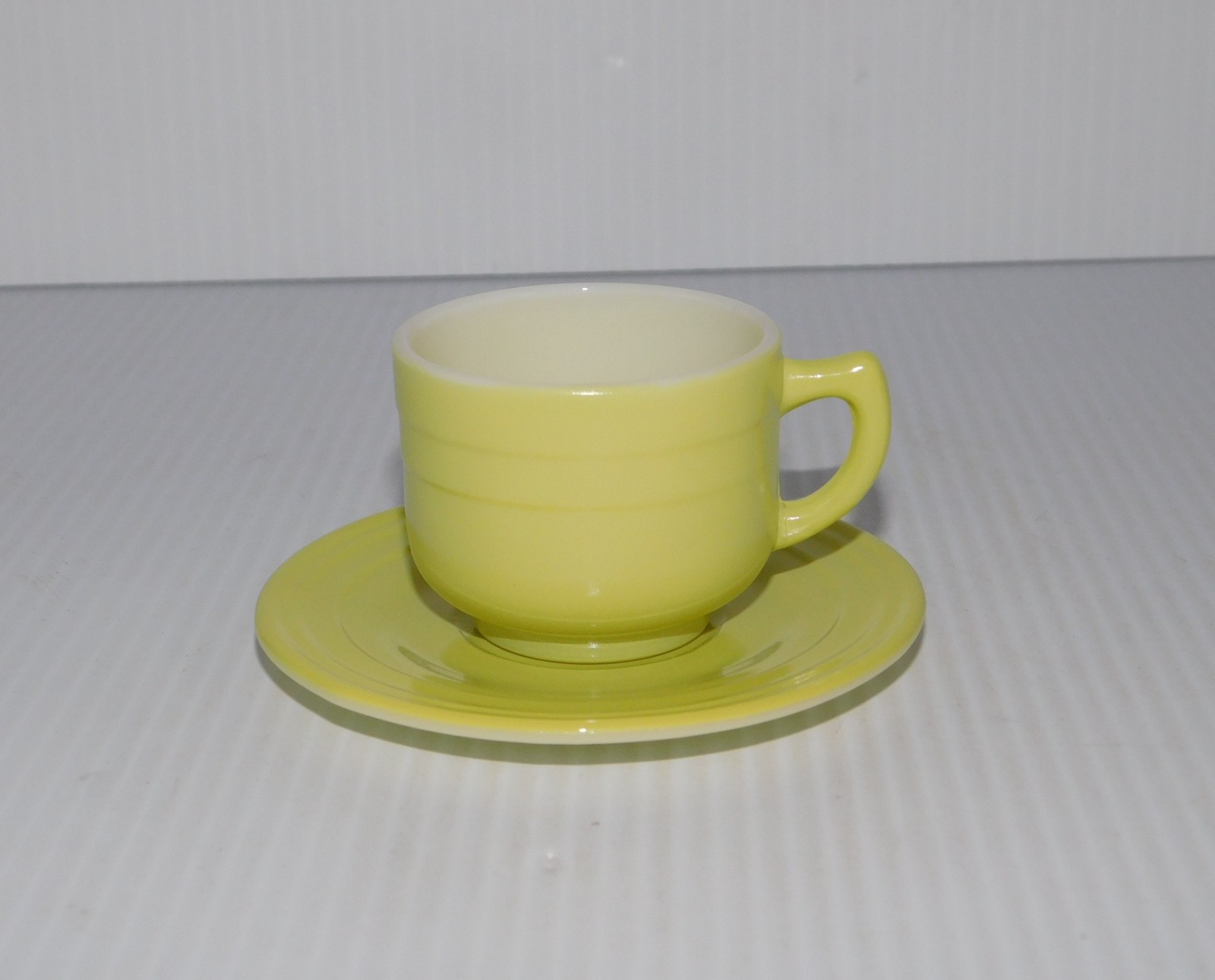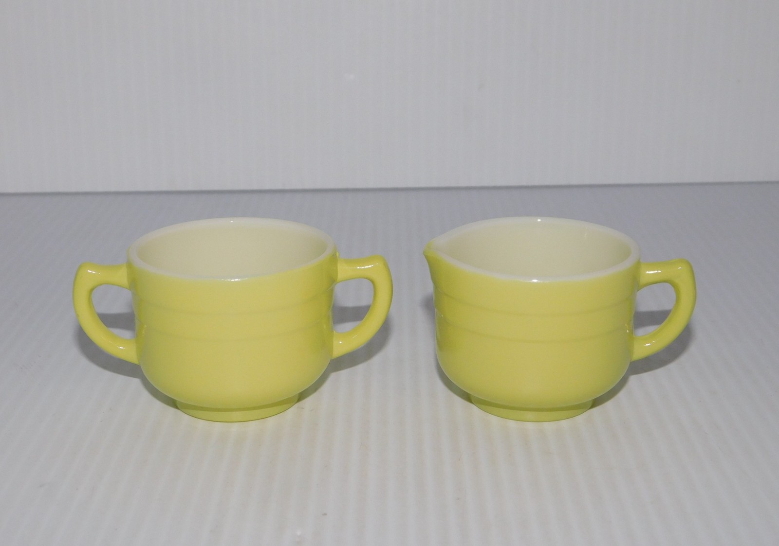 как выглядит HAZEL ATLAS MODERNTONE PLATONITE LITTLE HOSTESS CHILDS CUPS SAUCERS CREAM SUGAR фото