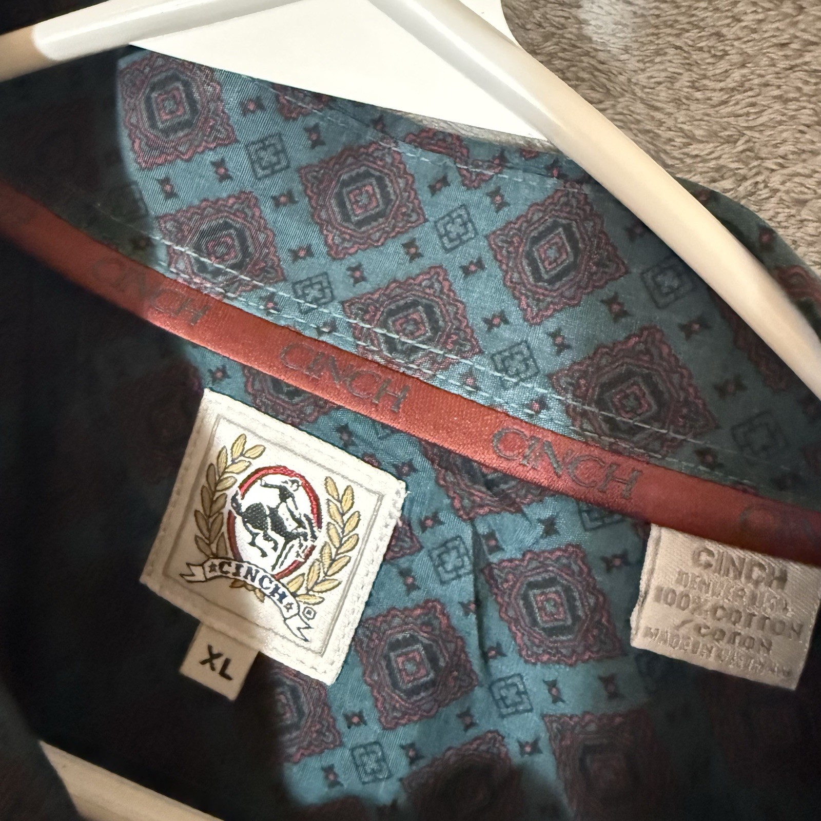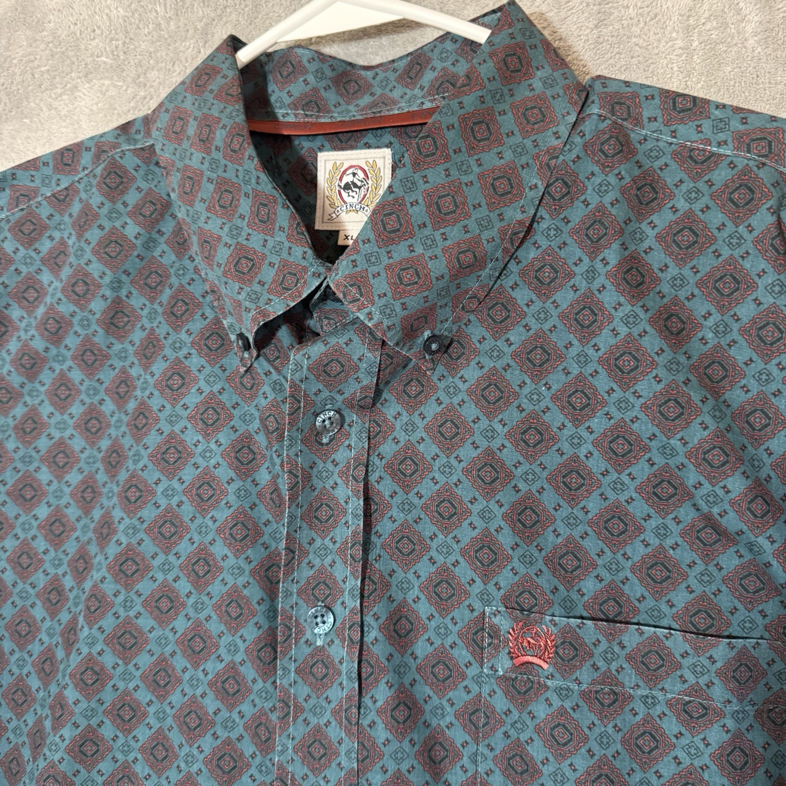 Cinch Shirt Mens XL Dark Green Geometric Long Sleeve Button Down Western Cowboy