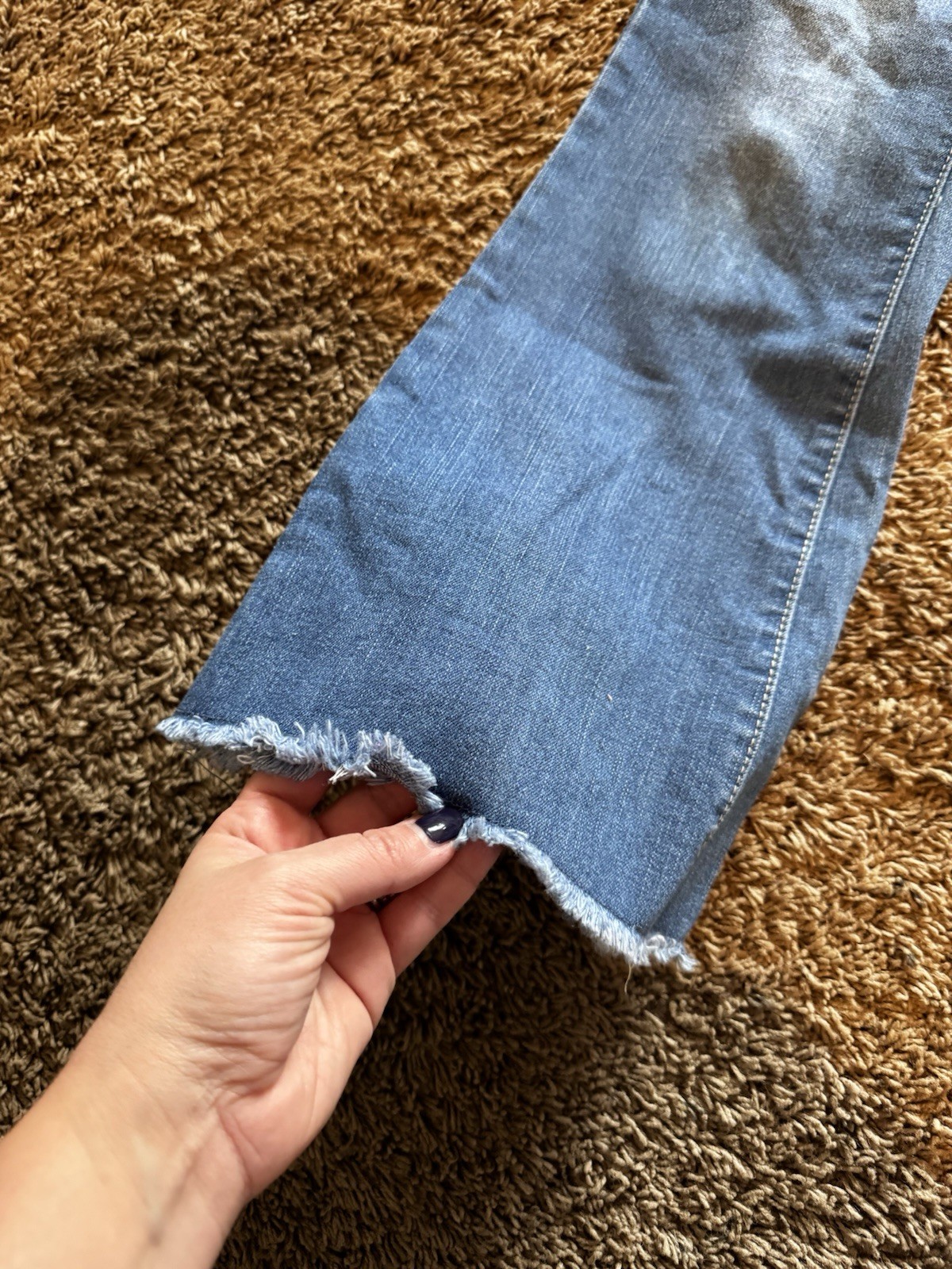 Forever 21 Kids Girl s Medium Wash Denim Flare Cut Off Hem Jeans, Size 11 / 12