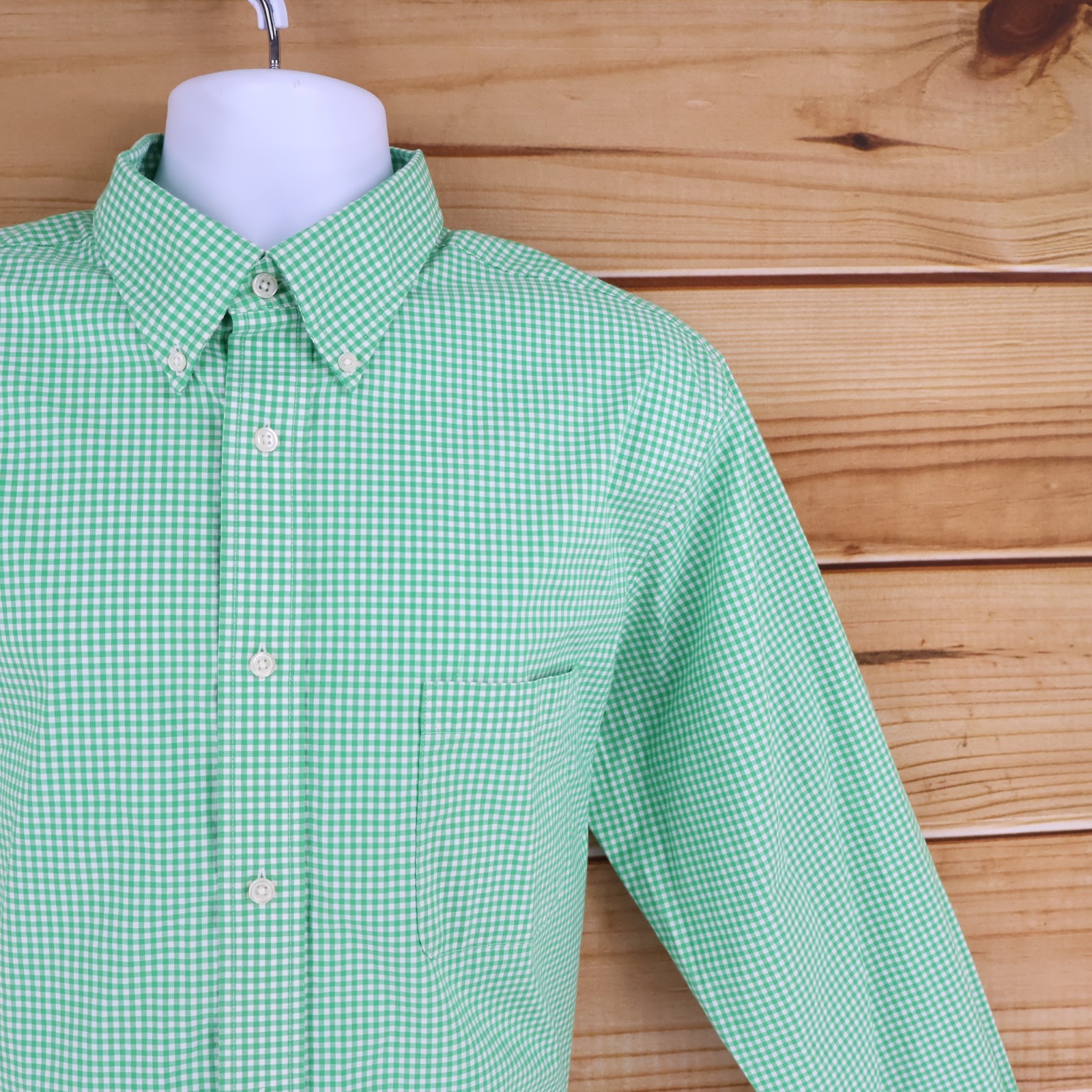 как выглядит Croft Barrow Button Up Shirt Mens Sz 17.5 Green Check Classic Fit True Comfort фото