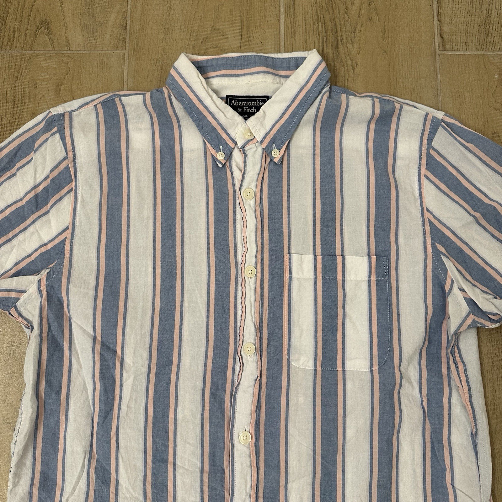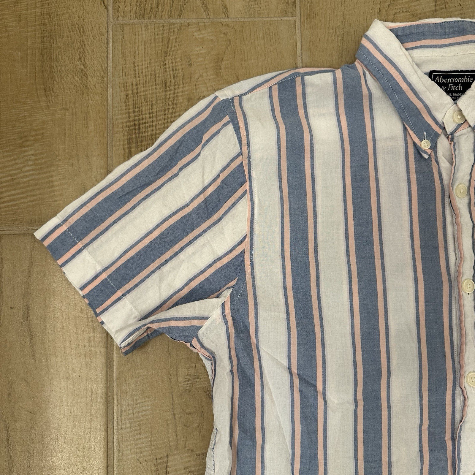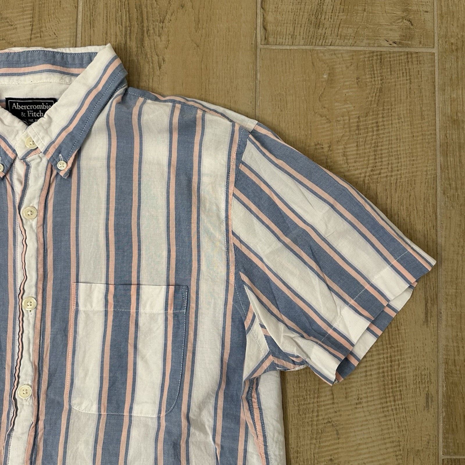 Abercrombie Fitch Short Sleeve Striped Button Shirt White Men s Medium