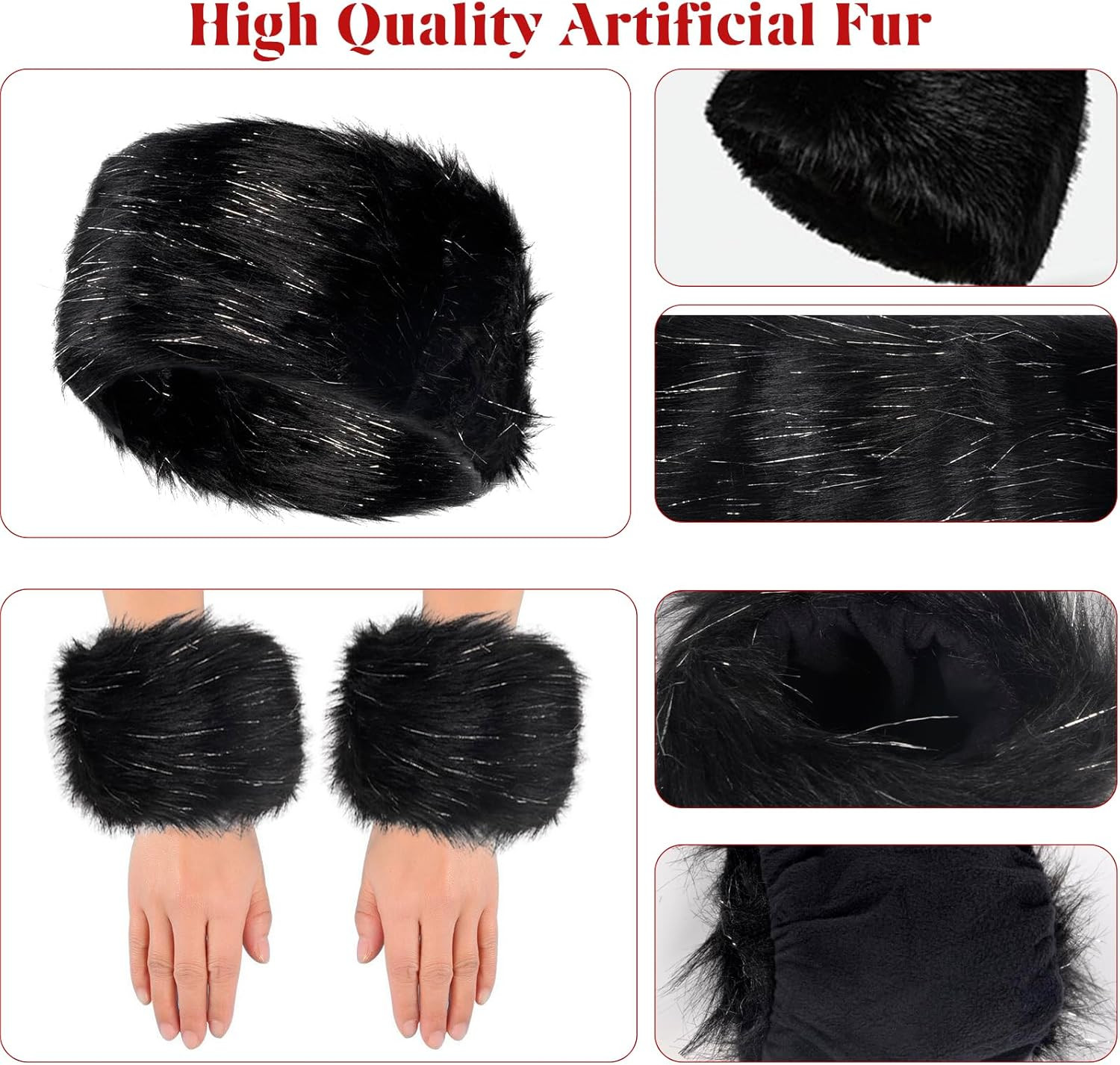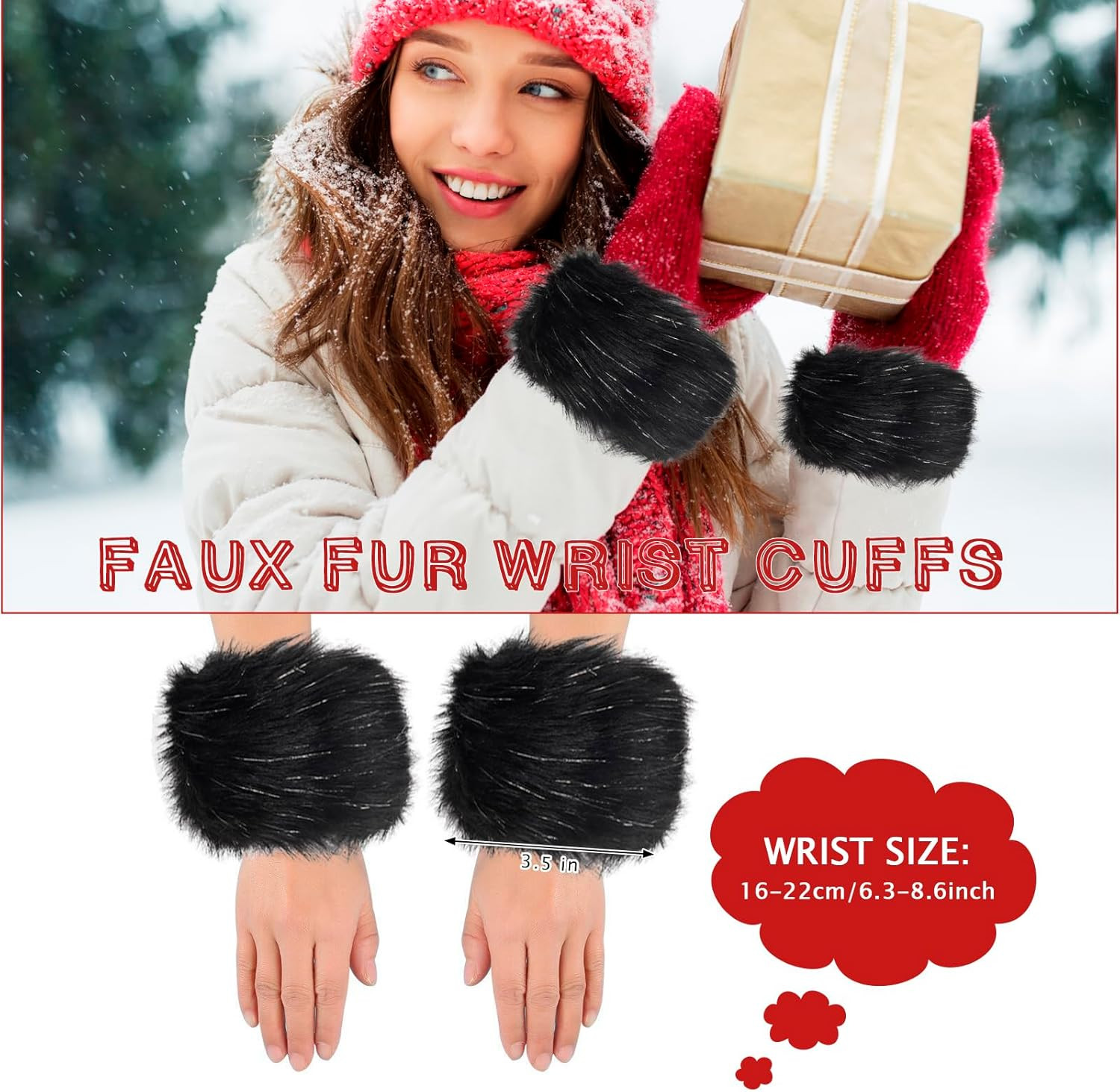 как выглядит Fuzzy Fur Leg Warmers Set - 3 Pcs Women Winter Furry Boot Cuffs Faux Fur Headban фото