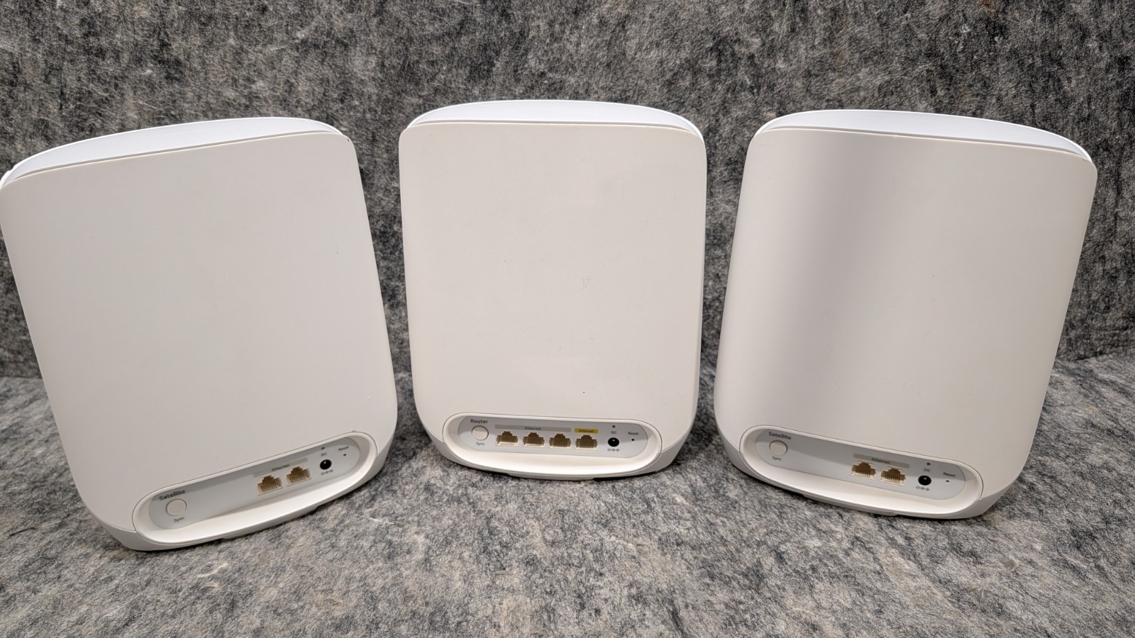 как выглядит NETGEAR Orbi RBR750 Tri-band Mesh WiFi 6 AX4200 3-pack - Router 2 Satellites фото