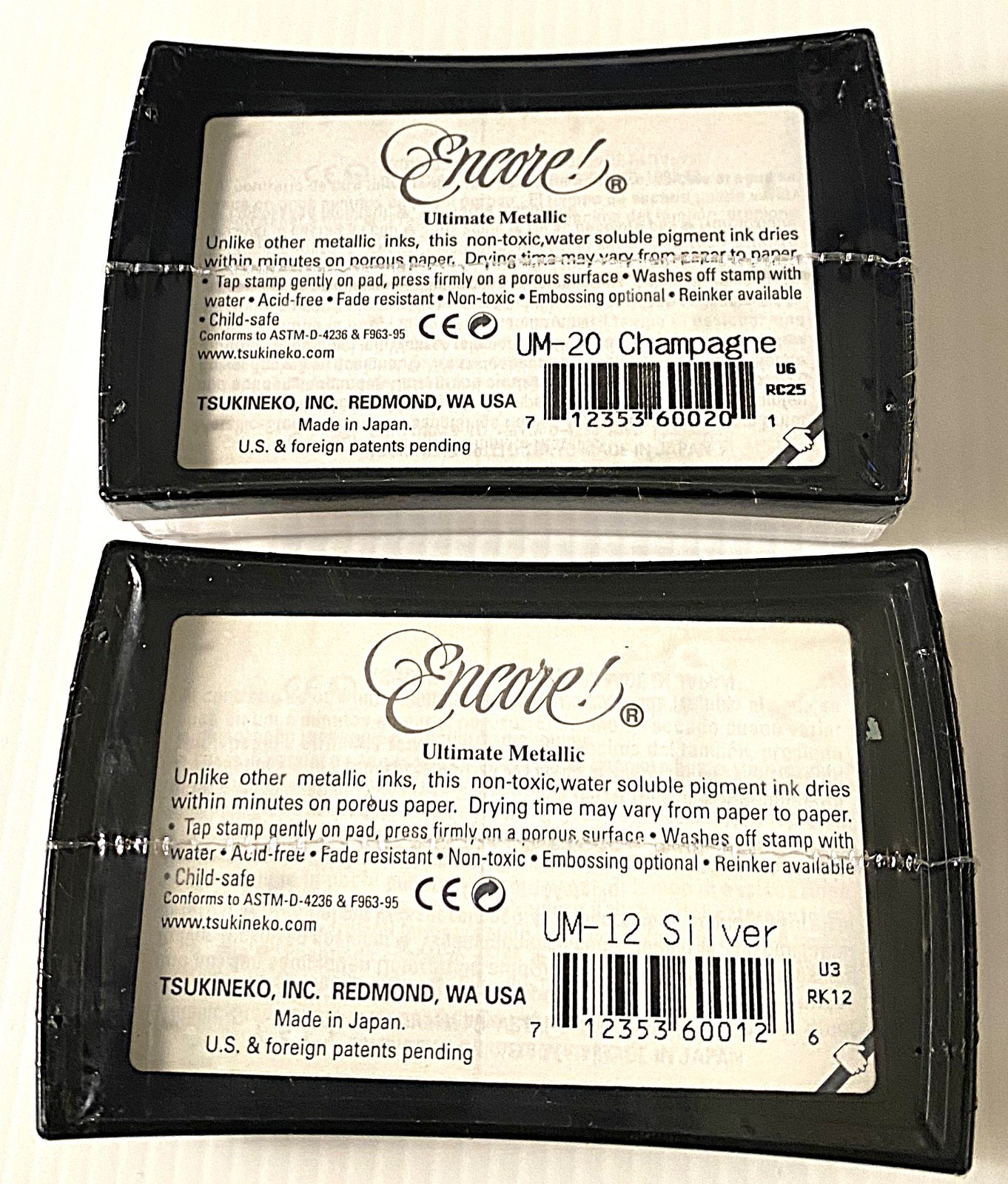 2 Tsukineko ENCORE Silver CHAMPAGNE Ultimate Metallic Pigment INK PADS New