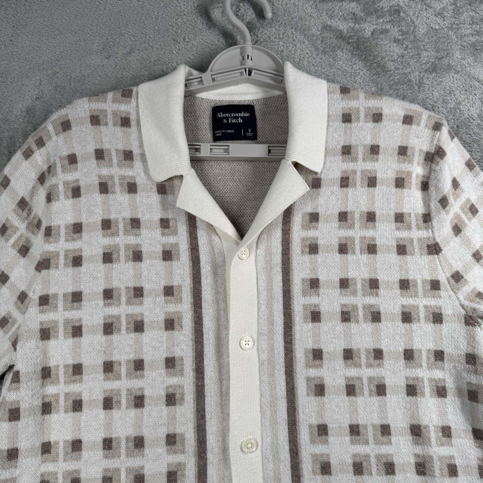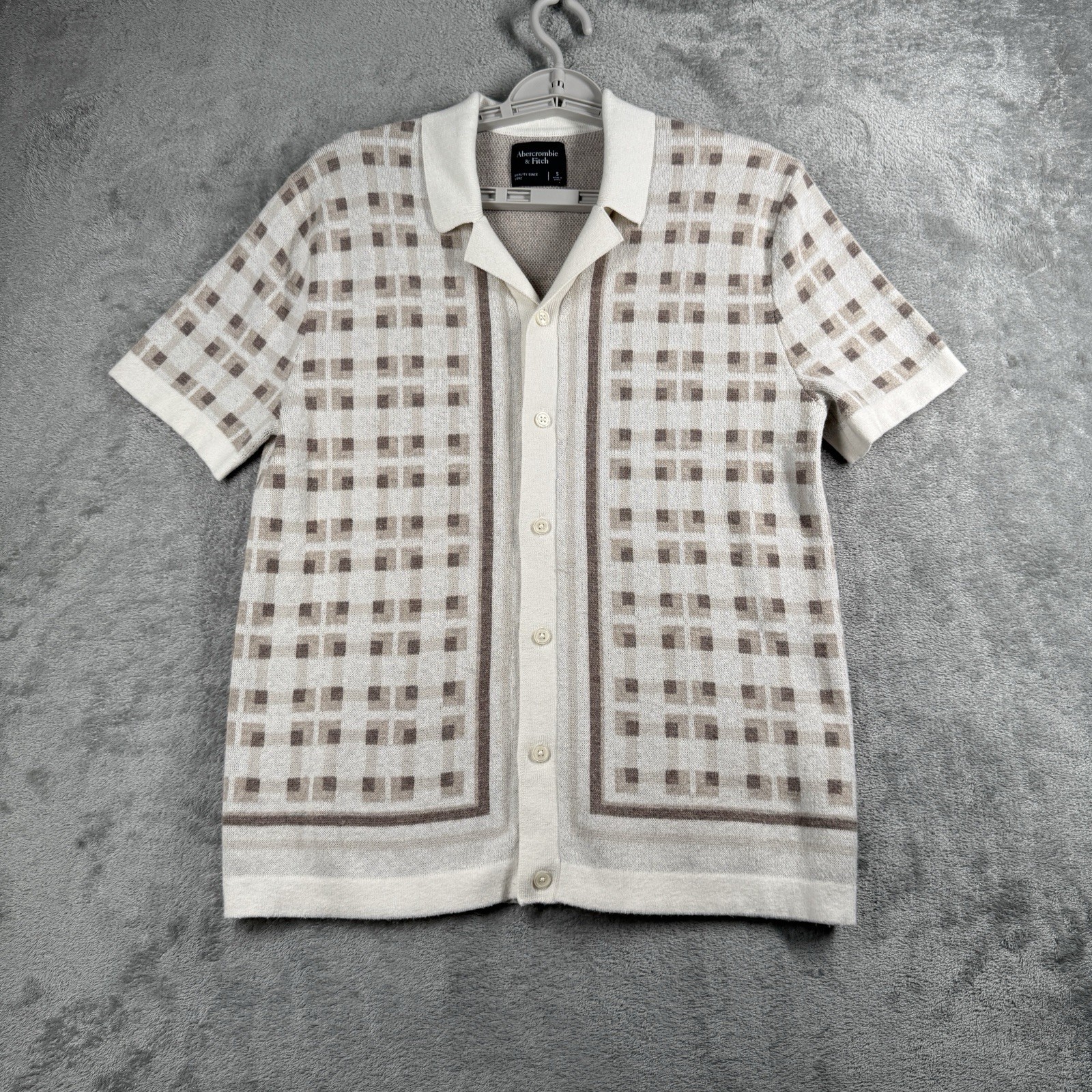 Abercrombie Fitch Mens S Cream Tan Plaid Knit Button Shirt Retro Preppy Casual