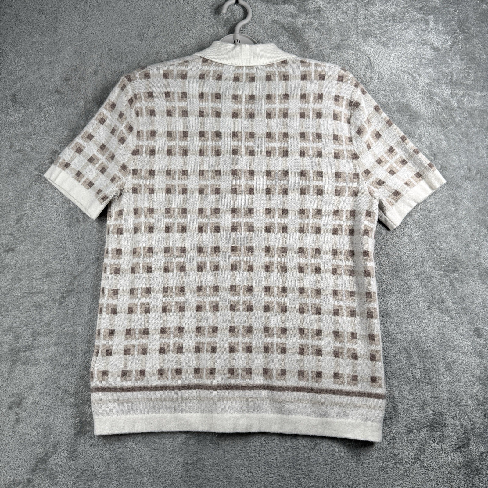 как выглядит Abercrombie Fitch Mens S Cream Tan Plaid Knit Button Shirt Retro Preppy Casual фото