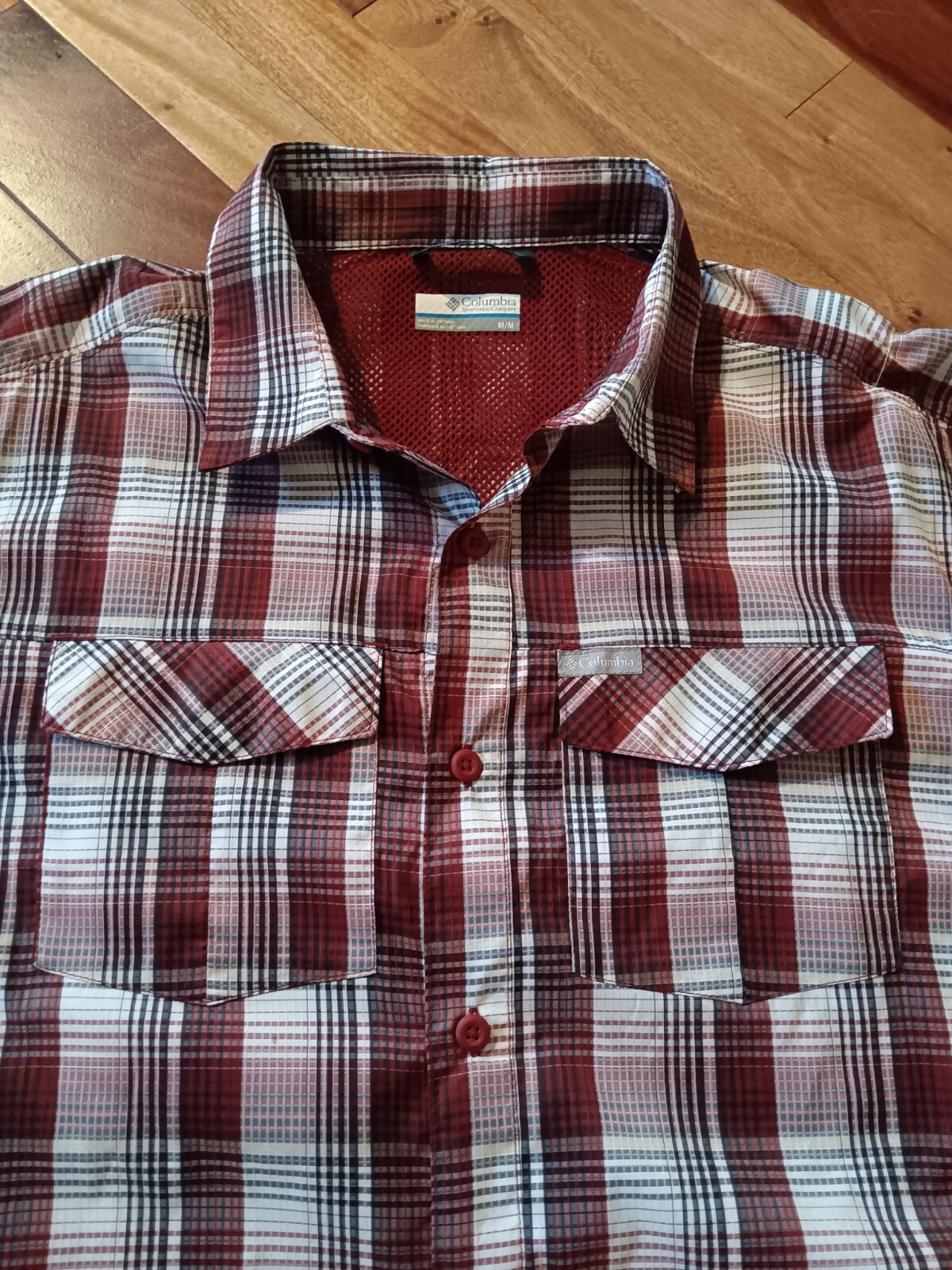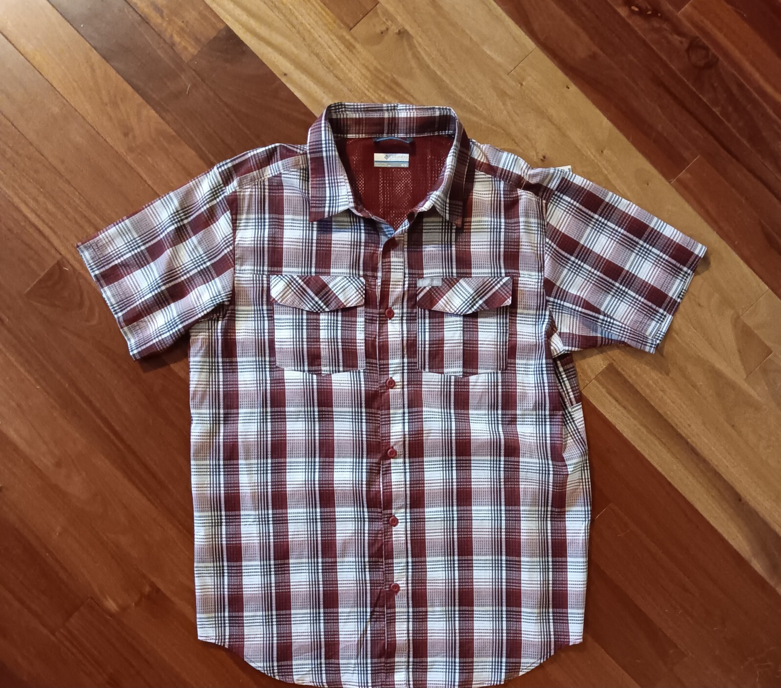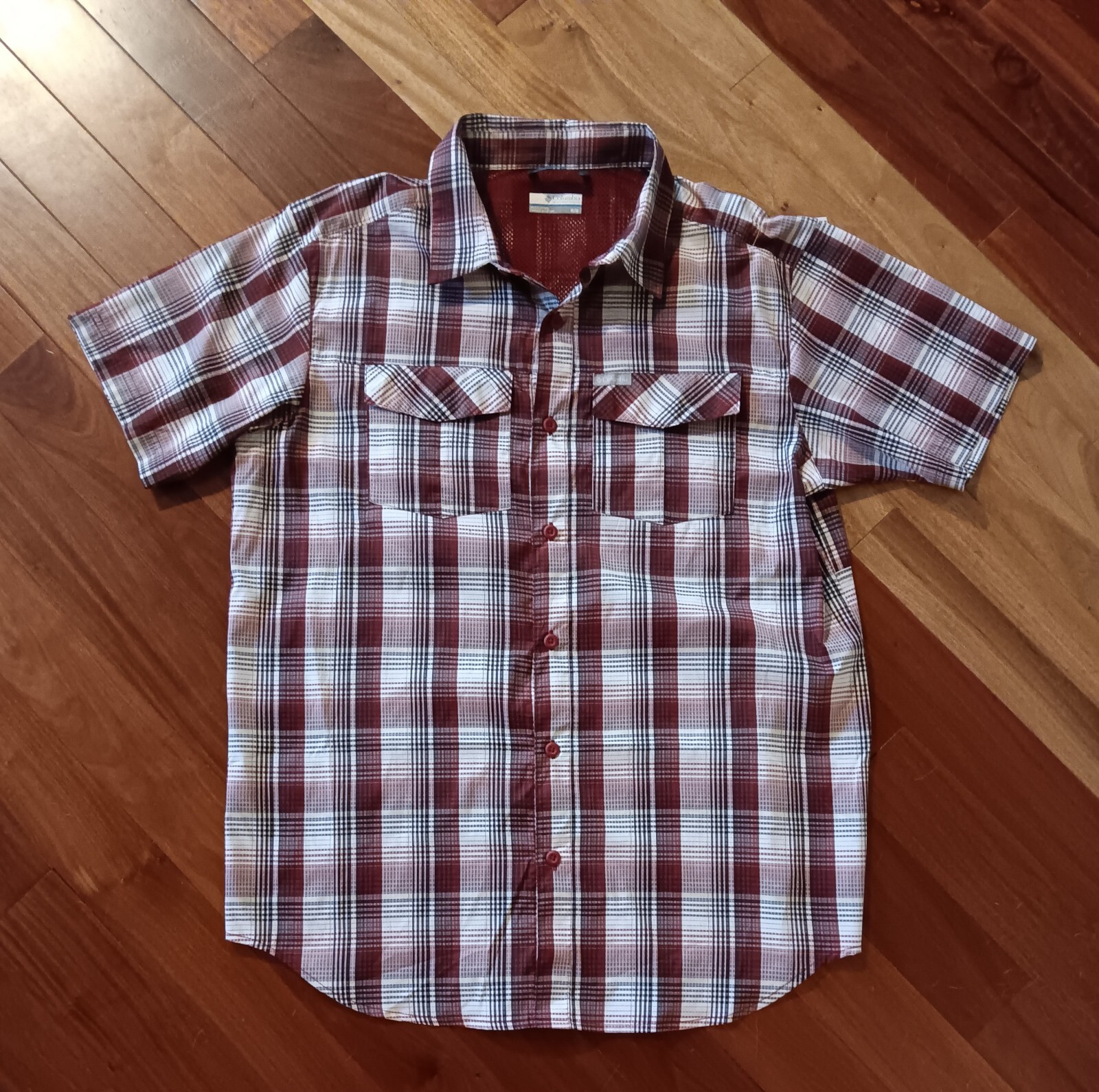 Columbia Shirt Men s Medium Lightweight Button Up Short Sleeve Check Red