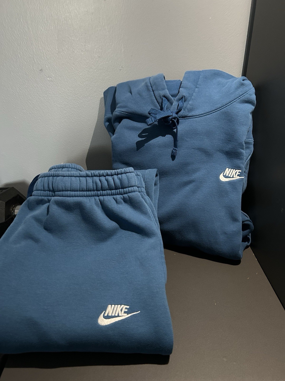 Nike Men's Blue Hooded Tracksuit Set Hoodie Pants Logo Drawstring