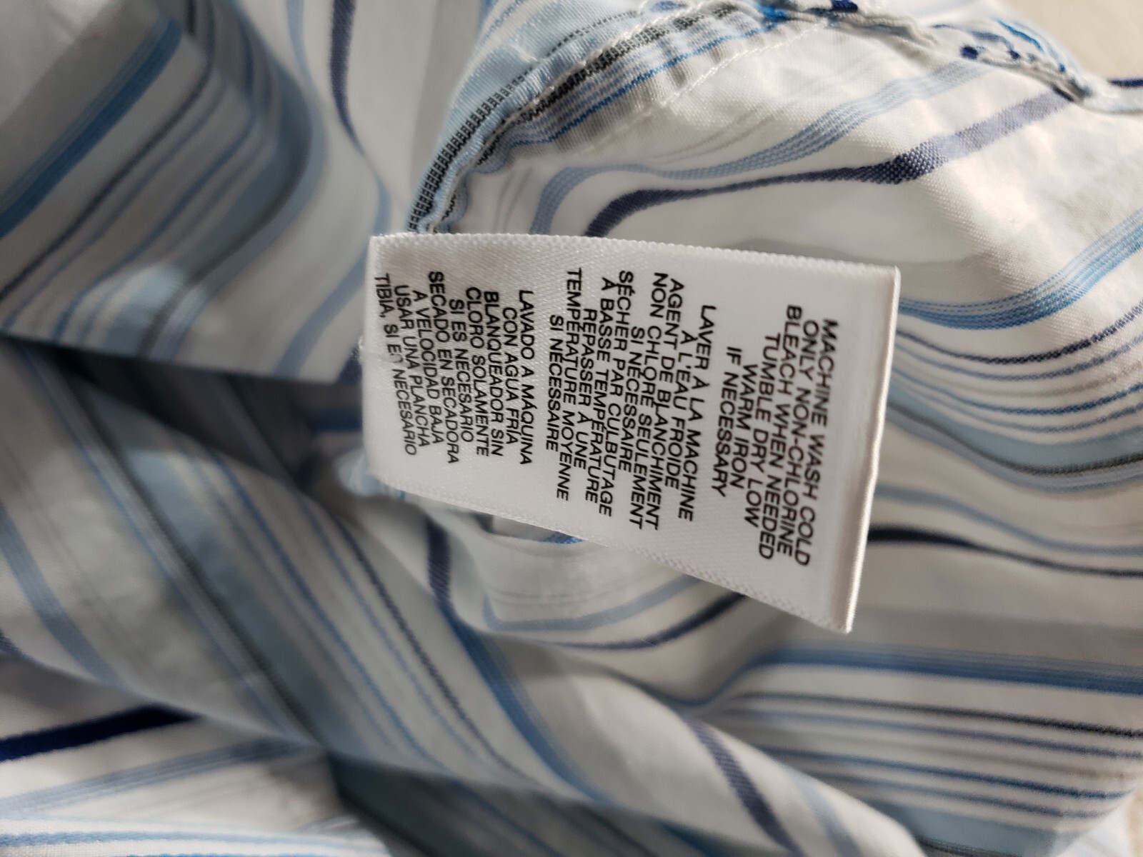 как выглядит Michael Kors Mens Long Sleeve Button Up Shirt Large Blue Stripe Cotton фото