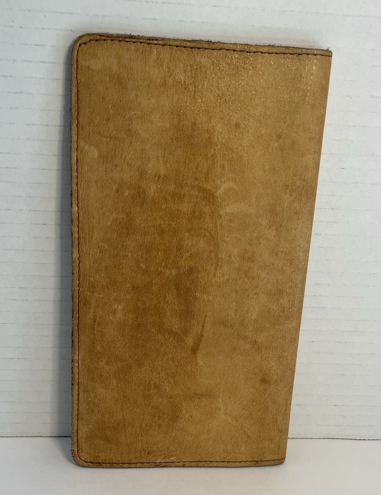 VTG Brown Tan Leather Bi-Fold Large Passport Holder ID Travel Organizer Wallet