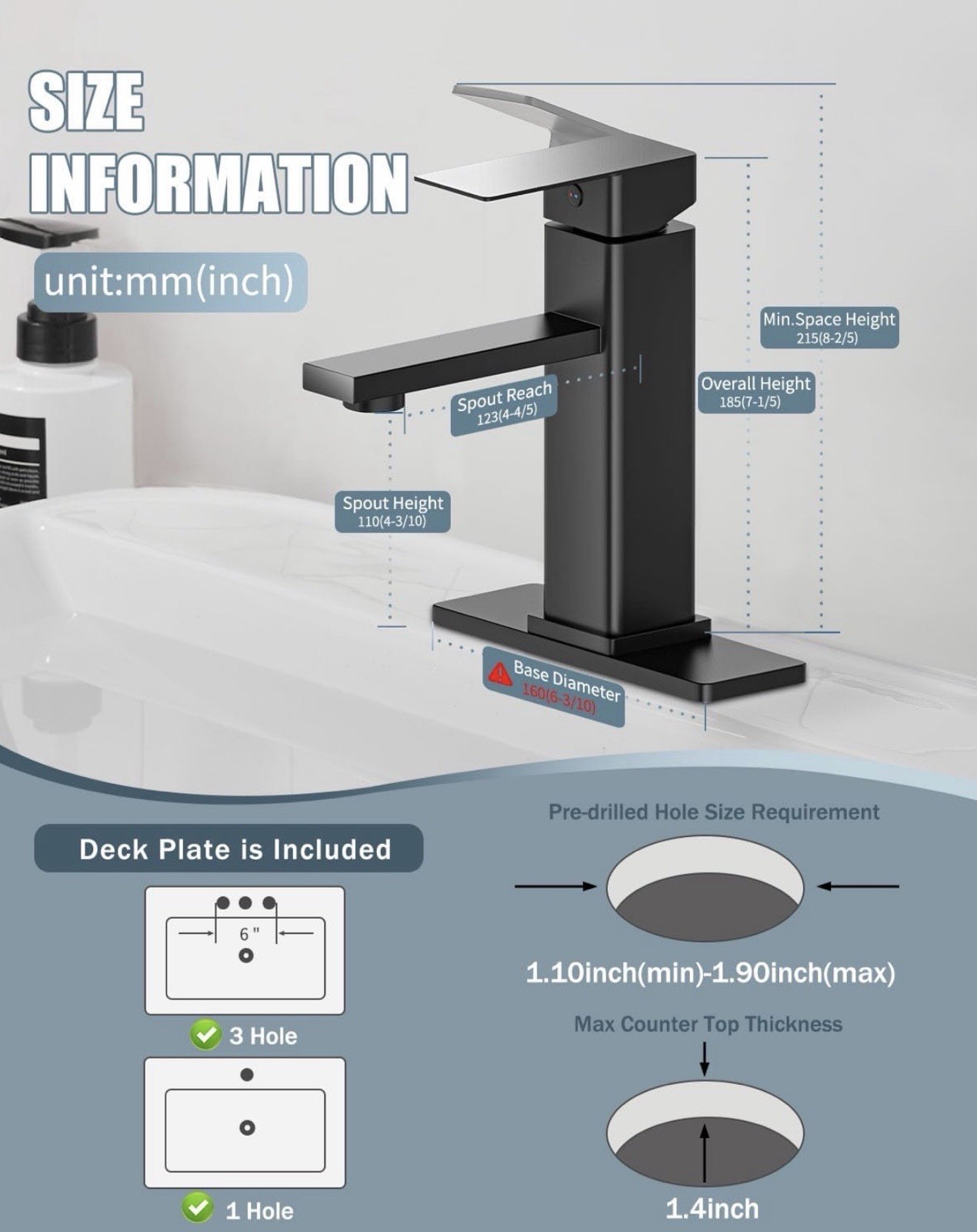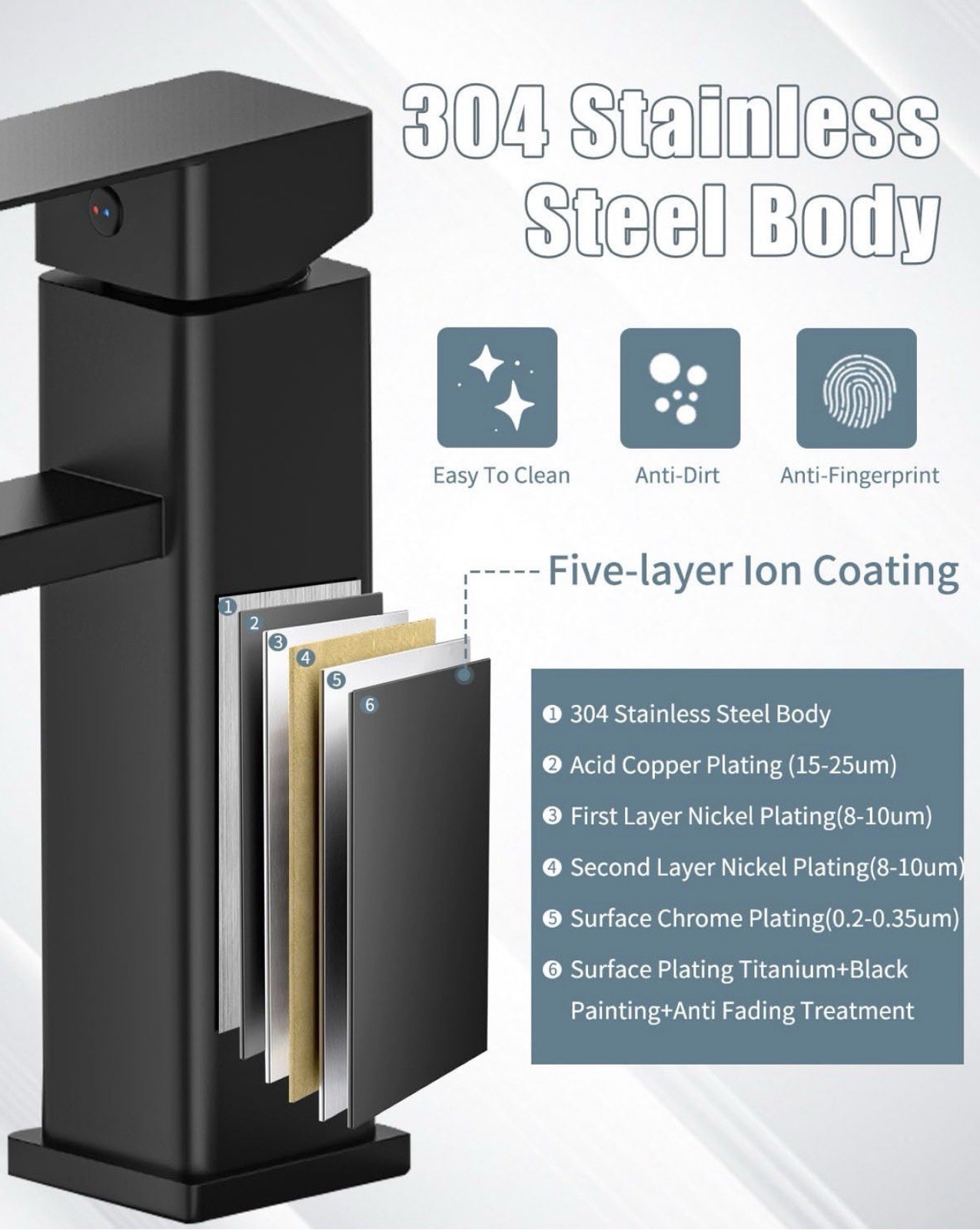 Bathroom Faucets Set with Pop Up Drain, Modern Single Handle Black Bathroom