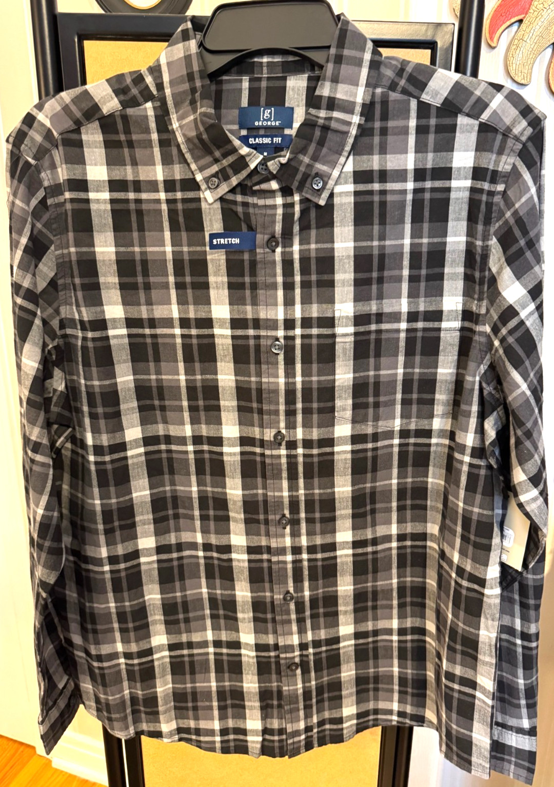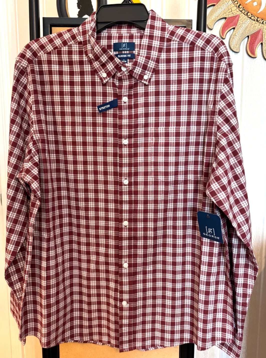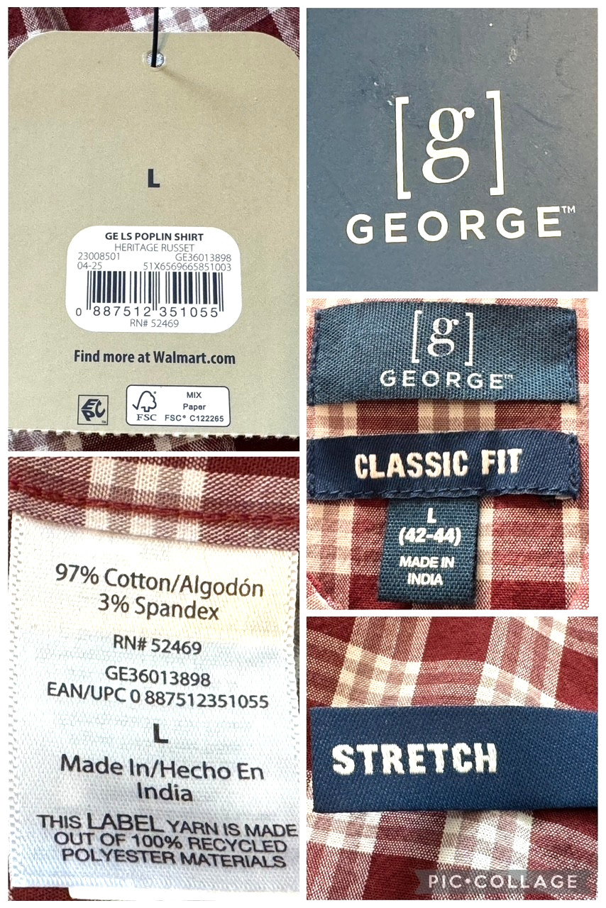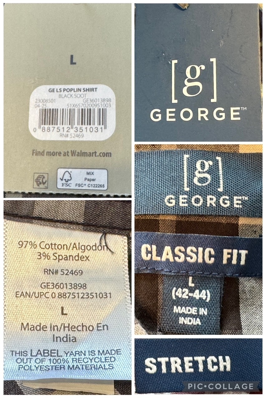 как выглядит GEORGE Casual LS Poplin SHIRTS Size Large 1 Black Soot 1 Heritage Russet NWT фото
