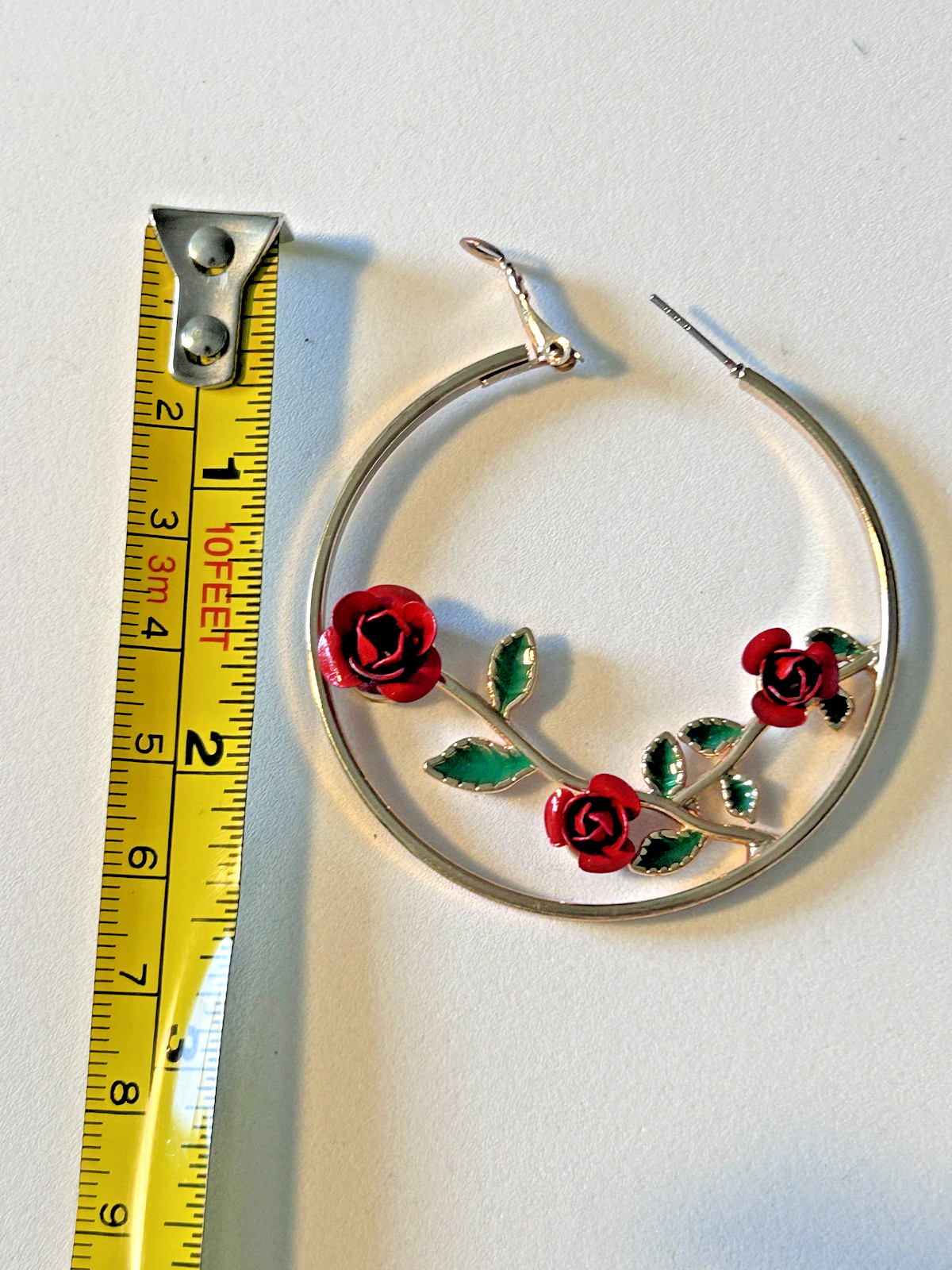 как выглядит 2 inch Gold Hoop Fashion Earrings Red Rose Accents, Snap Close фото