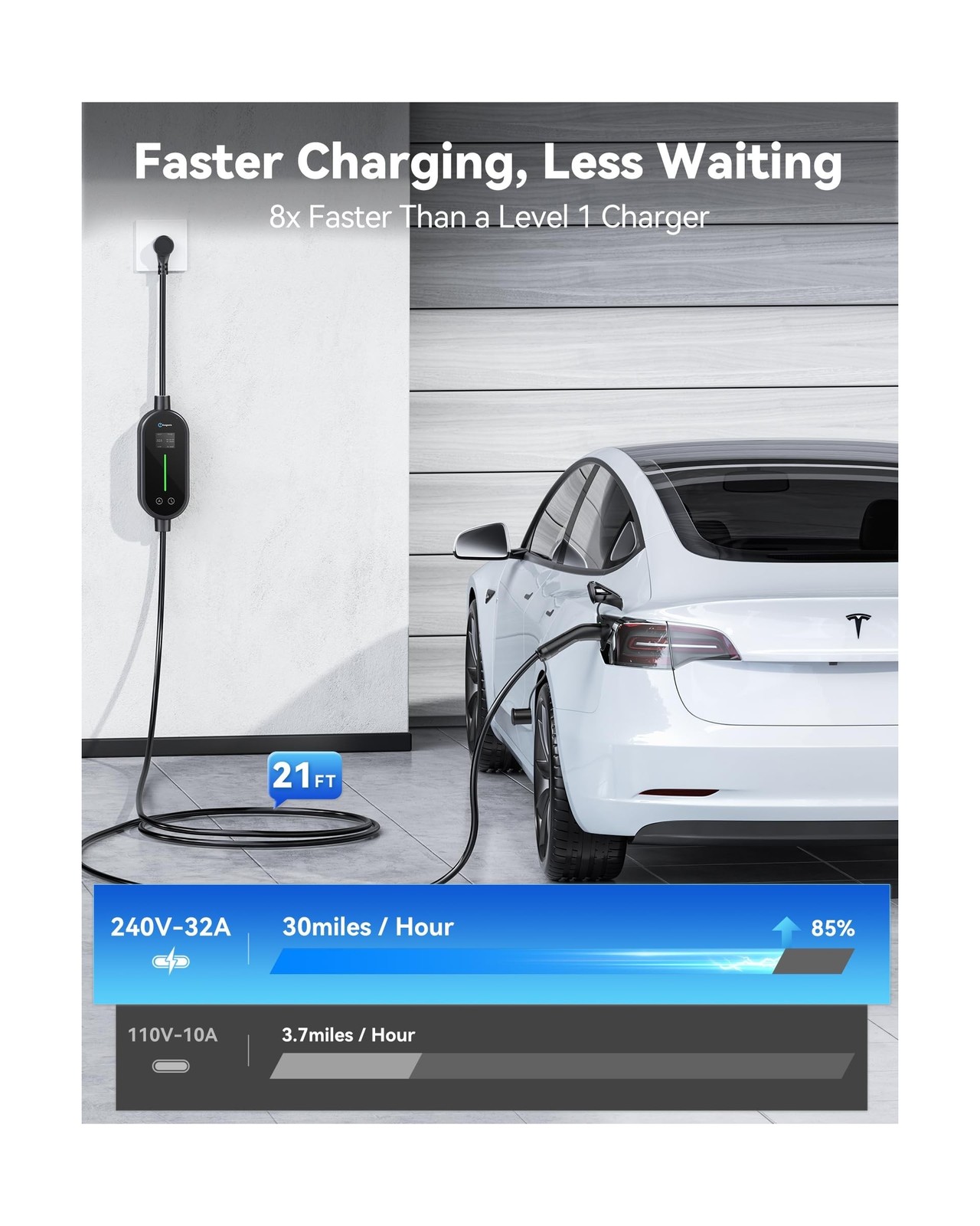 Level 2 Tesla Mobile Charger, 32A/240V - 7.68KW Portable Home Charging Cable ...